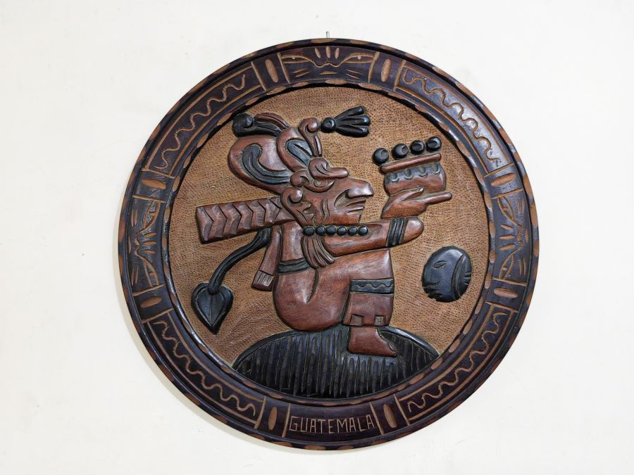 TẤM GỖ CHẠM KHẮC BẰNG TAY MAYAN TỪ DÂN BẢN ĐỊA GUATEMALA. ( Dùng để trang trí treo tường )