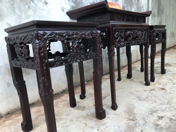 bộ 3 bàn bày đồ Huế gỗ gụ