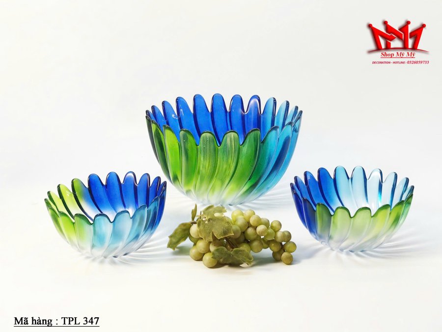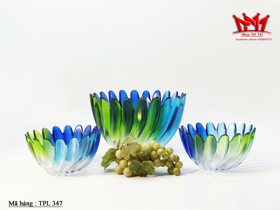 Bộ 3 Bát thủy tinh Walther Blue Green Petal cổ điển