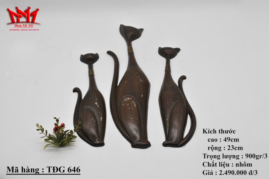 Bộ 3 con mèo trang trí treo tường được làm bằng nhôm