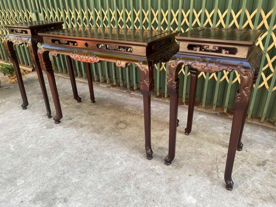 Bộ 3 món gỗ gụ bàn Kt. 125/60/81 cặp đôn Kt. Cao 81 mặt 38