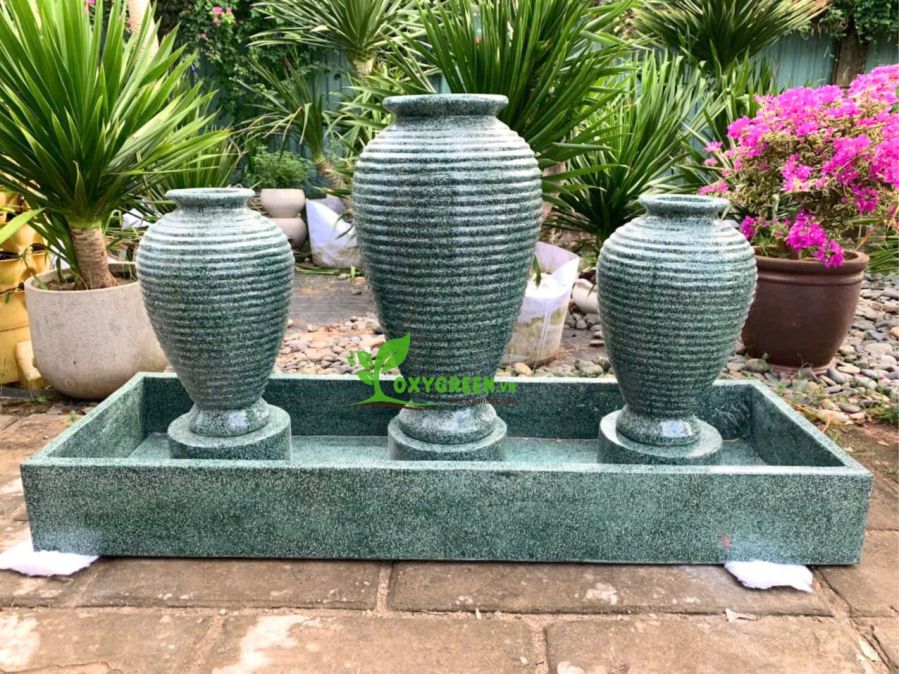 Bộ Tam Sơn Thạch Thuỷ Bình là bộ 3 lu nước phong thuỷ được xếp cạnh nhau. tuỳ vào sở thích và nhu cầu của mỗi gia chủ, bộ Tam Sơn Thạch Thuỷ Bình sắp xếp theo nhiều kích thước và vị trí khác nhau. Gia chủ có thể đặt bộ Tam Sơn trong chậu xi măng đá mài hoặc hồ cá. Có thể sử dụng chậu riêng lẻ cho từng lu hoặc chậu lớn chứa cả 3 lu nước. Tại Oxygreen có sẵn các màu vàng, trắng, đen, xanh, đỏ. Gia chủ có thể chọn màu lu phong thuỷ hợp mệnh và sở thích.