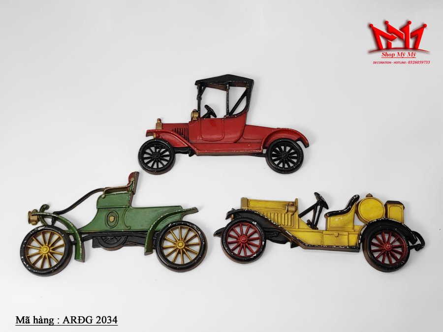 Bộ 3 xe decor cổ điển được làm bằng nhôm treo tường.