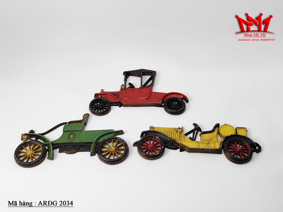 Bộ 3 xe decor cổ điển được làm bằng nhôm treo tường.