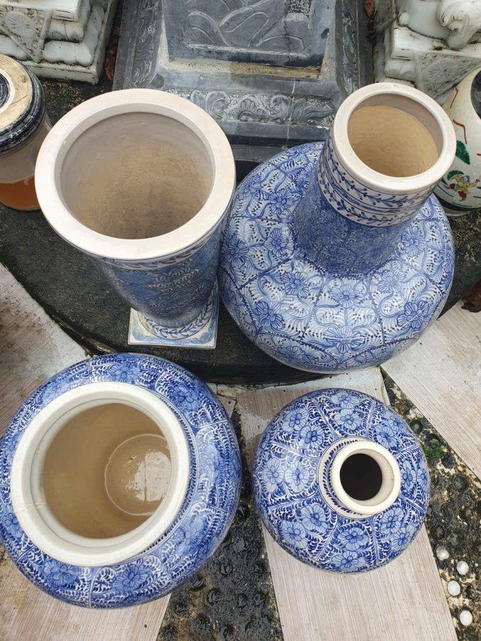 Bộ 4 chiếc bình gốm Sài Gòn xưa.(hàng đặt làm từ công ty nội thất danh tiếng Williams_Sonoma.)