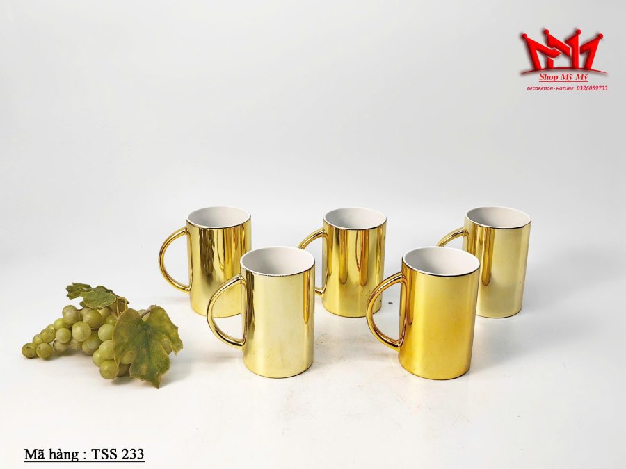 Bộ 4 cốc sành sứ kiểu dáng cổ điển màu vàng