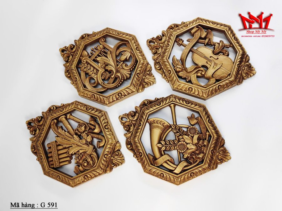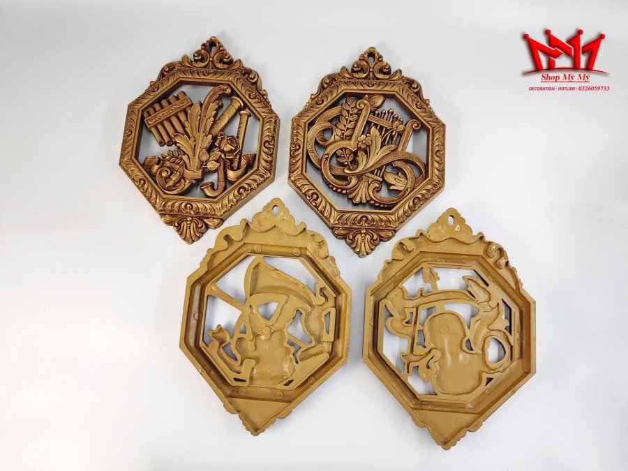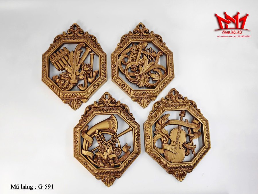 Bộ 4 tấm bảng trang trí tường Homco cổ điển tông màu vàng nhạc cụ