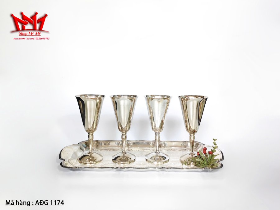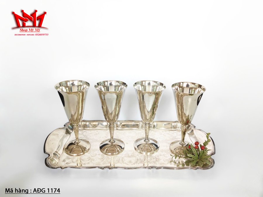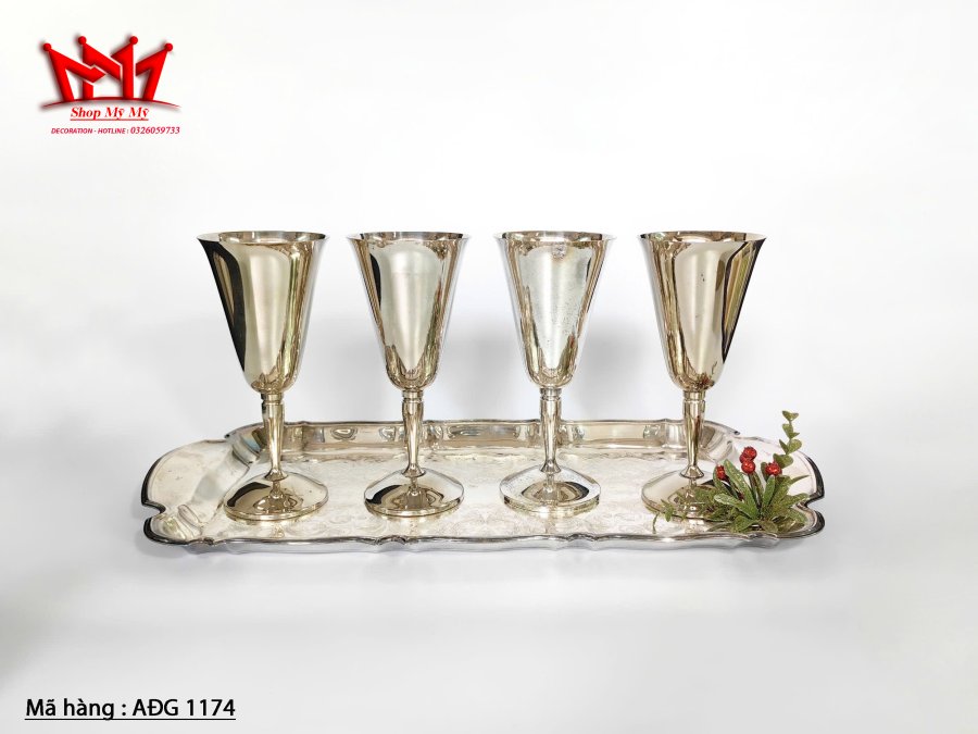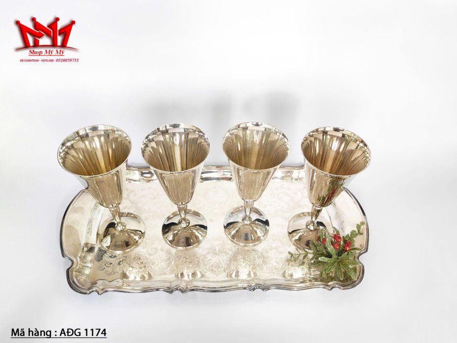 Bộ 5 ly bằng đồng mạ bạc cổ điển của Tây Ban Nha.