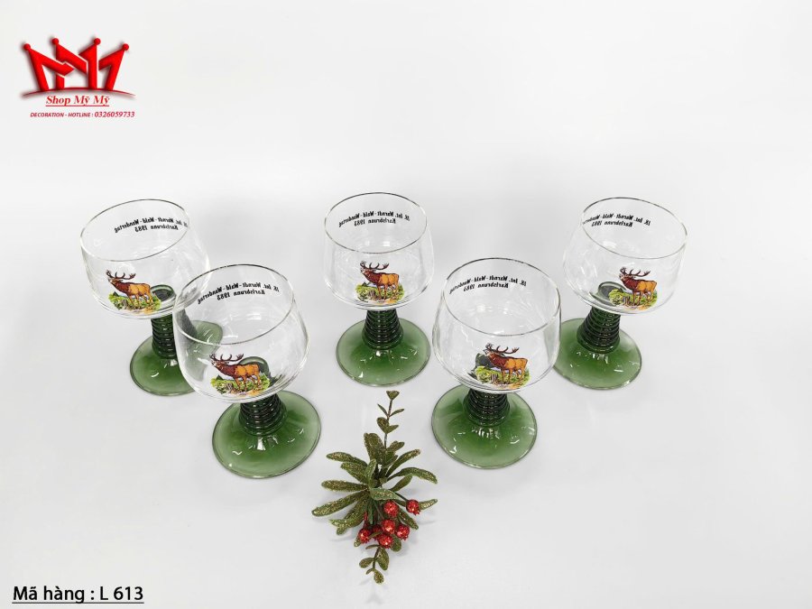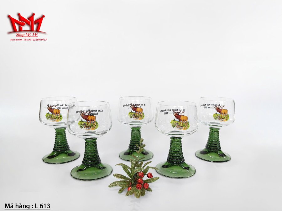 Bộ 5 ly thủy tinh thân xanh tổ ong của Đức - Những chiếc ly thủy tinh này kỷ niệm "Ngày đi bộ đường dài quốc tế Warndt-Wald lần thứ 18" (18. Int. Warndt-Wald-Wandertag) được tổ chức tại Karlsbrunn vào năm 1983.