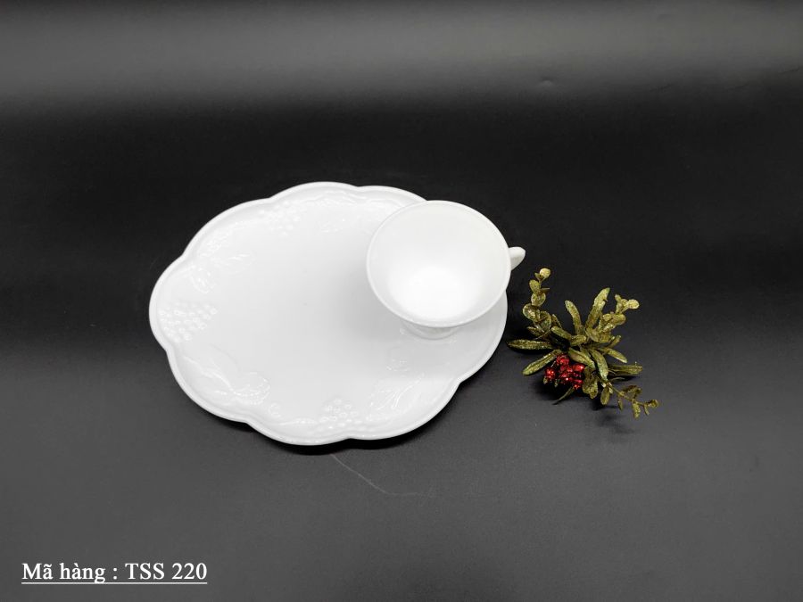 Bộ 5 tách và đĩa ăn Indiana Milk Glass Colonial Grape Harvest Snack Luncheon.
