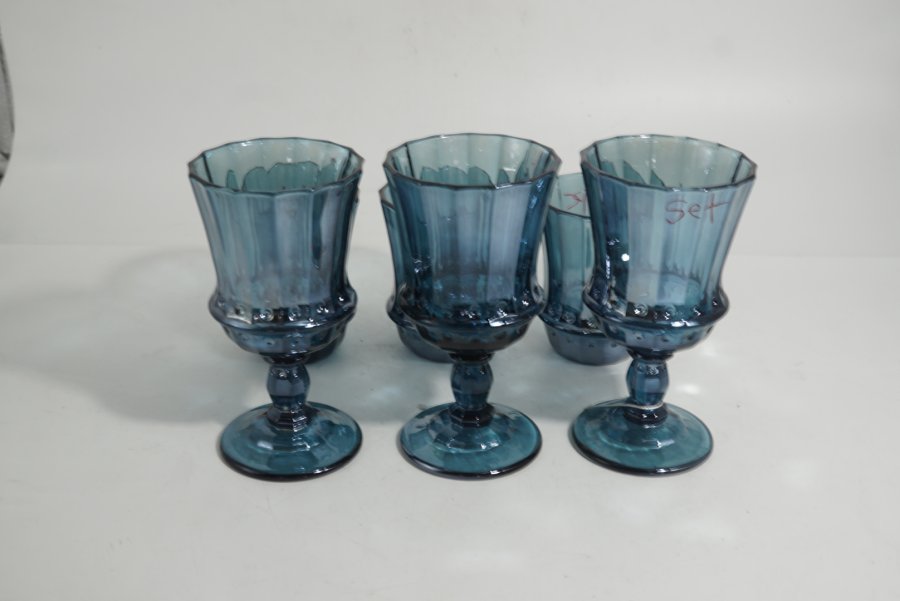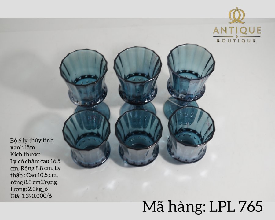 Bộ 6 ly thủy tinh xanh lam. Kích thước: Ly có chân: cao 16.5 cm. Rộng 8.8 cm. Ly thấp: Cao 10.5 cm, rộng 8.8 cm. Trọng lượng : 2.3kg_6