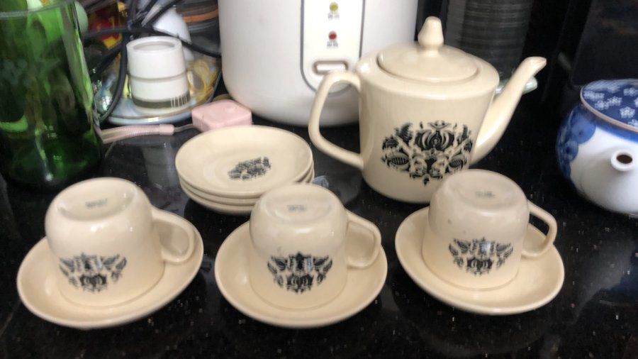Bộ ấm chén minh Long 1, song be xua (1 bình, 3 chen , 6 đia): 250k + ship
