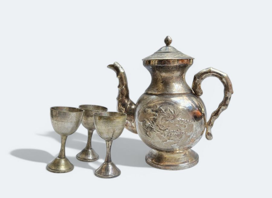 Bộ ấm đồng mạ bạc xưa