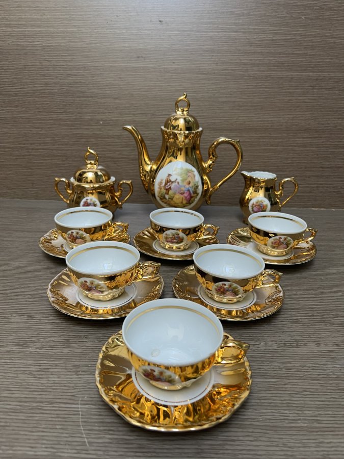 Tổng cộng 15 chi tiết : 3 ấm , 6 tách, 6 dĩa lót.