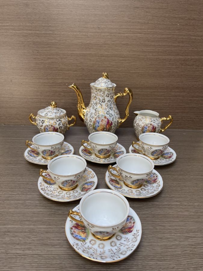 Bộ bao gồm : 3 ấm, 6 tách, 6 dĩa lót. ( 15 chi tiết )