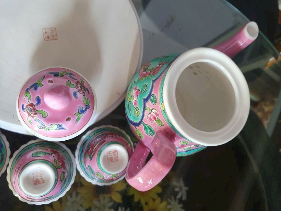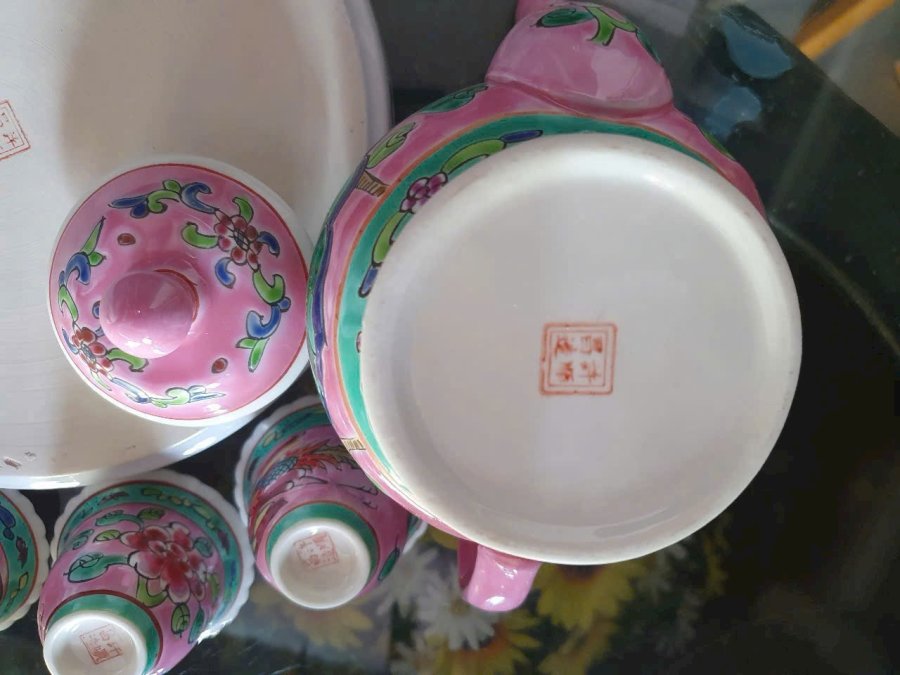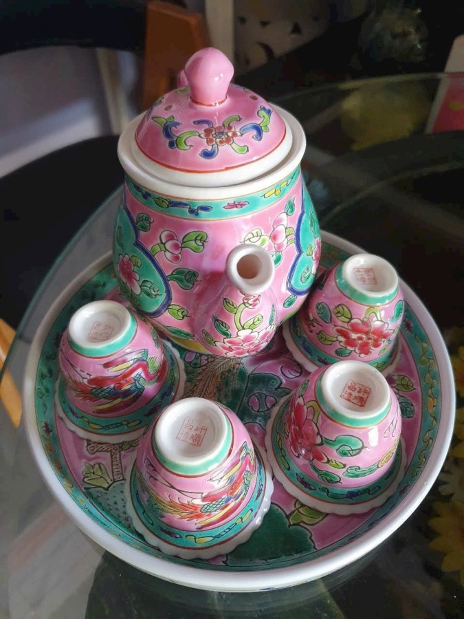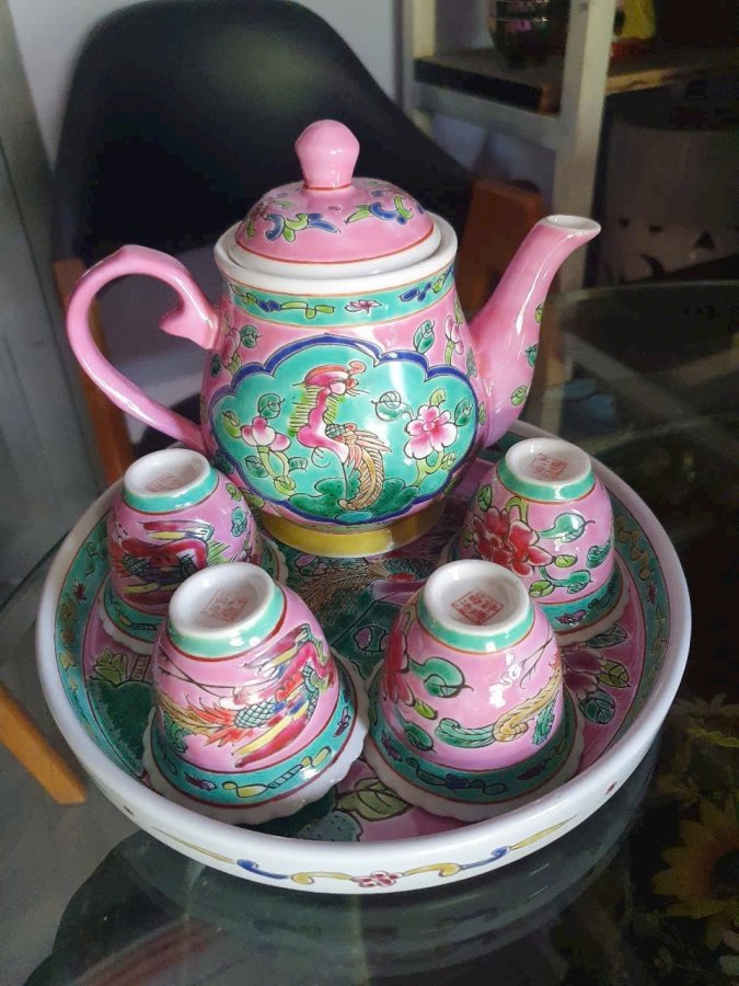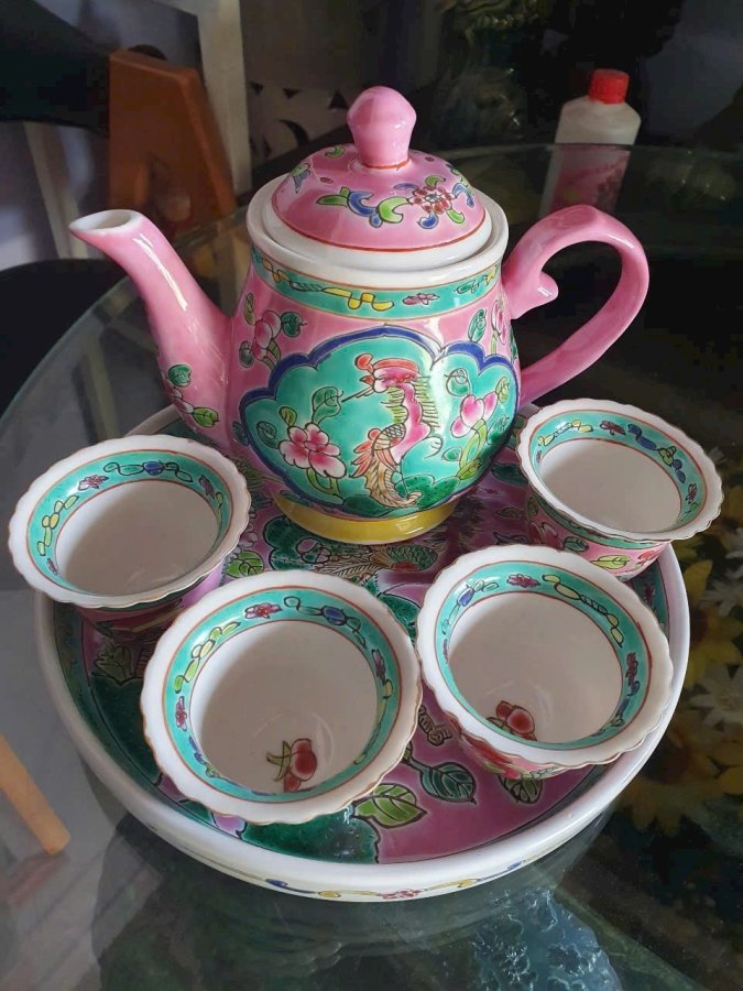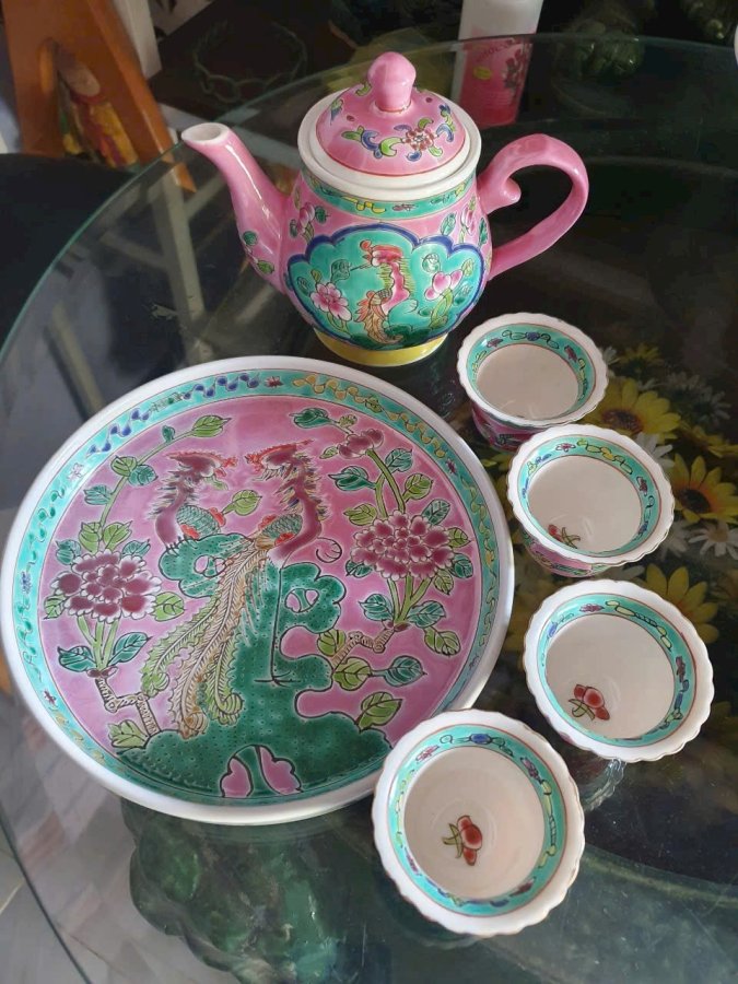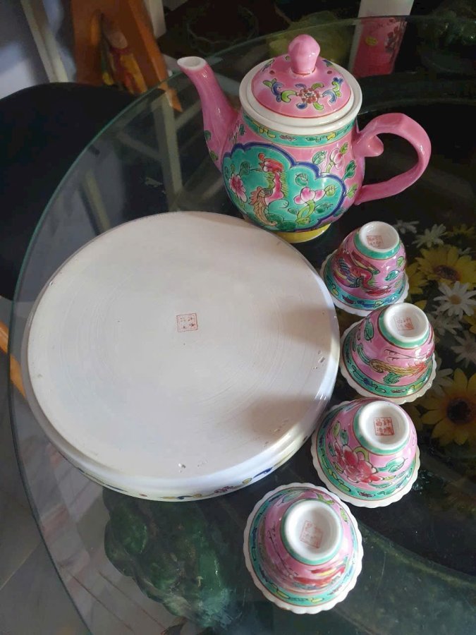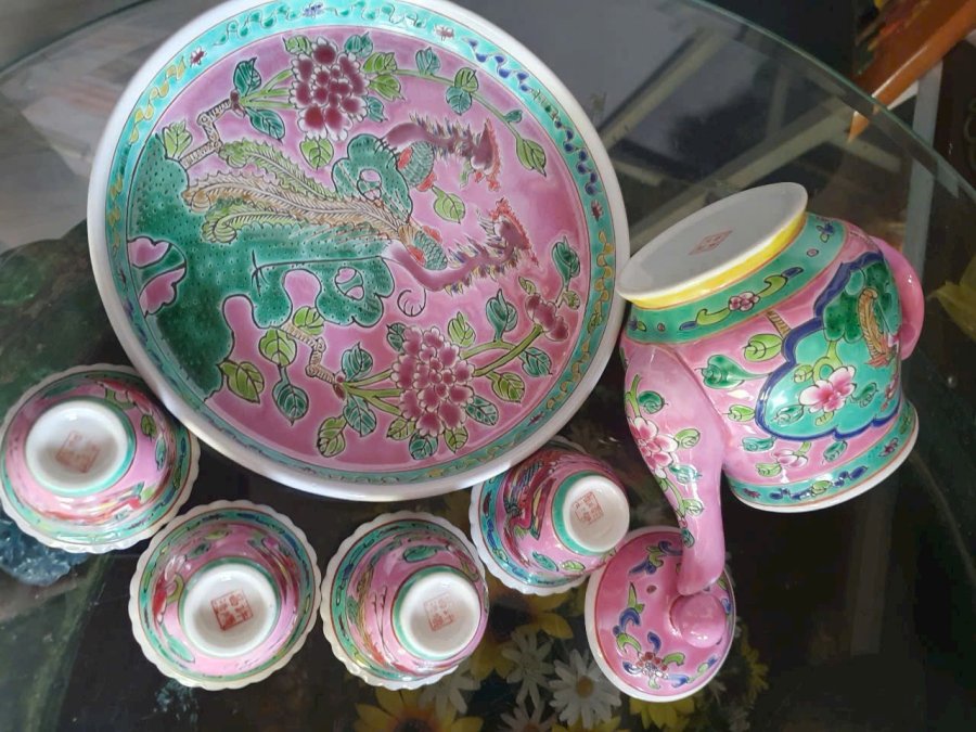 Bộ ấm trà gấm màu.Hàng xách tay về.Thow Kwang Pottery Jungle là lò nung lâu đời nhất còn sót lại ở Singapore.