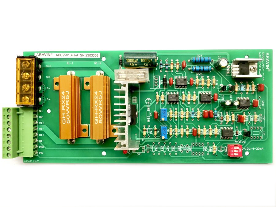 APCV-V1.4H-A là bo mạch điều khiển van tỷ lệ dùng cho các van có công suất lớn, các van có điện trở cuộn hút rất nhỏ (cỡ vài ôm) và dòng điện điều khiển lớn từ 2-5A. Nó có công năng sử dụng tuyệt vời, được thiết kế đầy đủ các tín hiệu đầu vào điều khiển dạng analog, xung tần số của van tỷ lệ như: điện áp: 0-10V, dòng điện 0-20/ 4-20mA, chiết áp 2-10K, đầu vào xung tần số đến 10KHz (cho lựa chọn loại bo có đầu vào điều khiển xung).