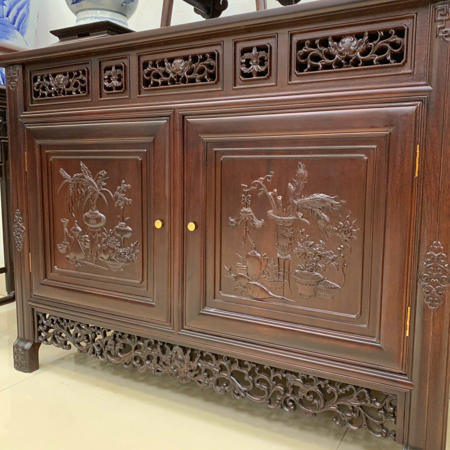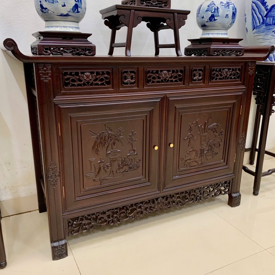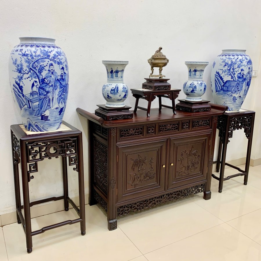 Bộ ba món tủ bày đồ và cặp đôn gỗ gụ