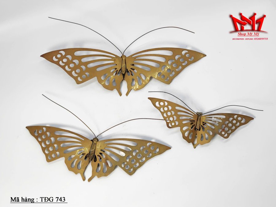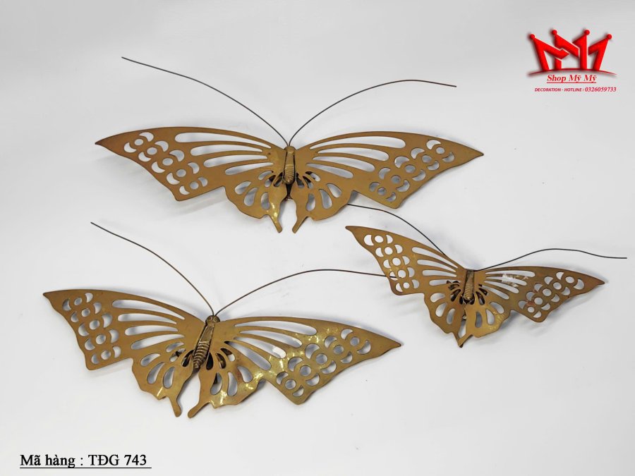 bộ ba vật trang trí treo tường hình con bướm bằng đồng.