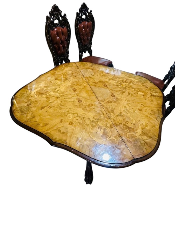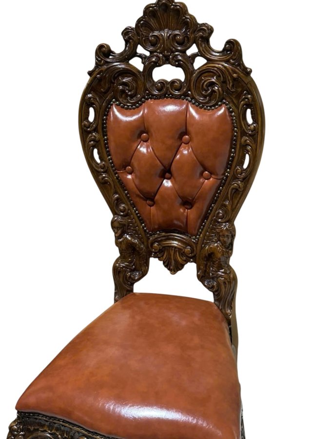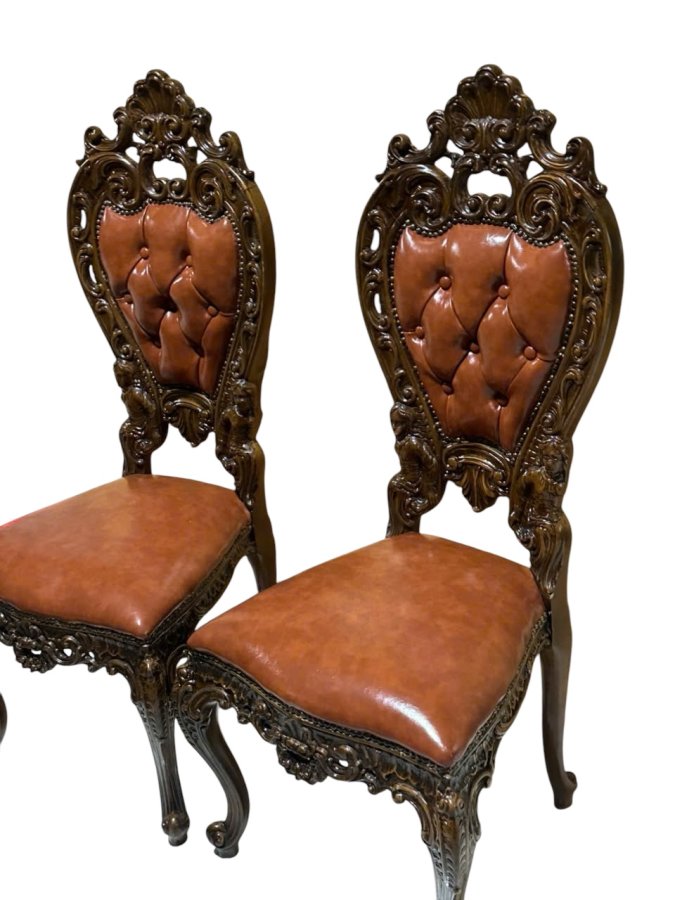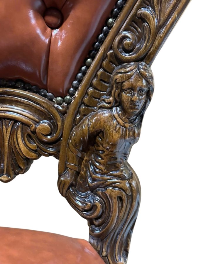 Bộ bàn ăn Pháp chuẩn cổ trên 100 năm, ghế da thật , chân đục chạm hình thiếu nữ cực kỳ sắc nét đẹp miễn bàn