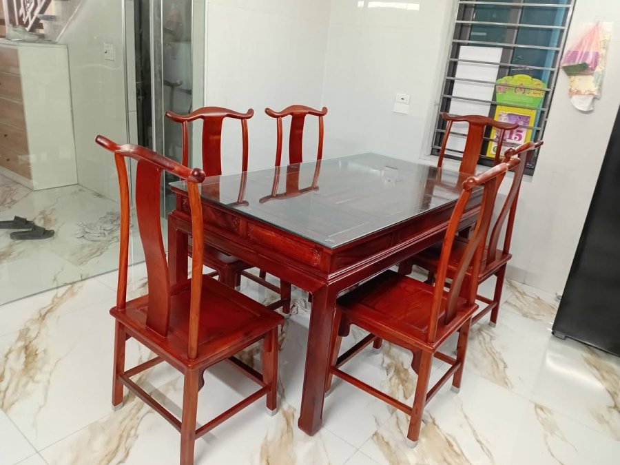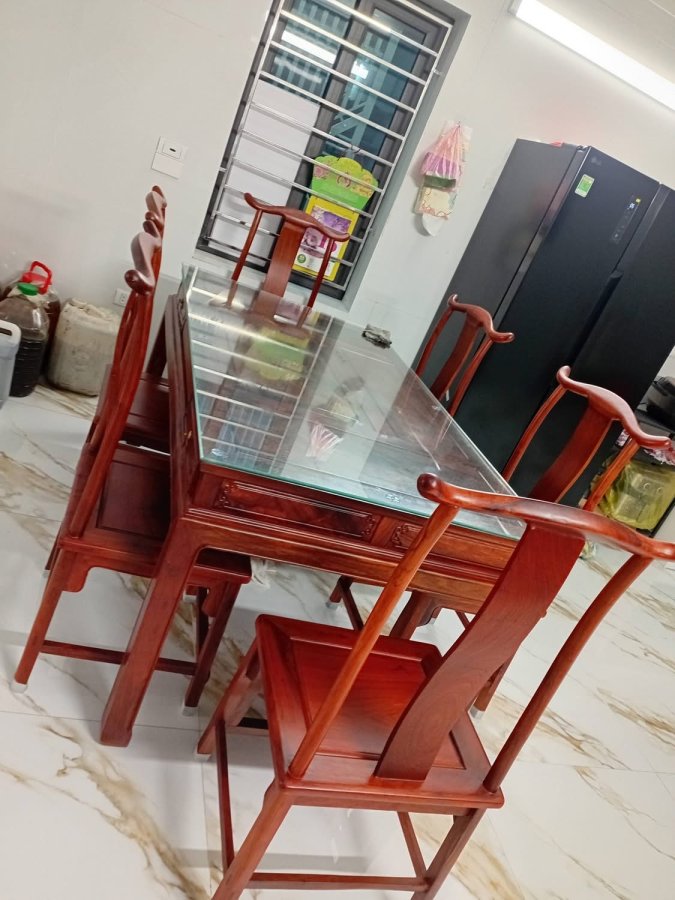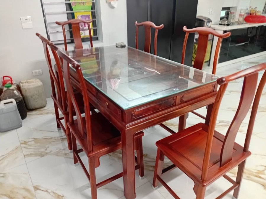 Bộ bàn ghế ăn gỗ hương ta gồm 7 món hoàn thiện có sẵn