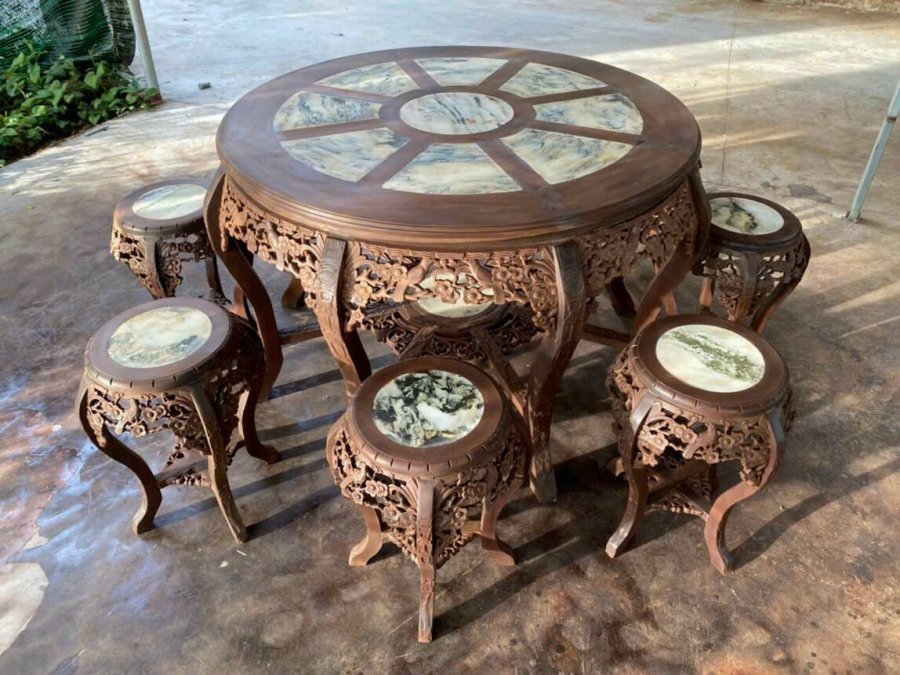 Bộ bàn ghế hoa mai gỗ gụ hàng Trần mộc gồm 7 món
