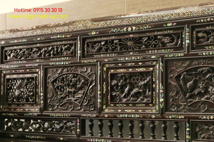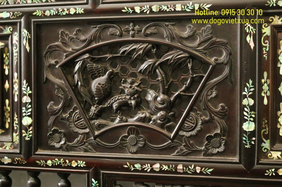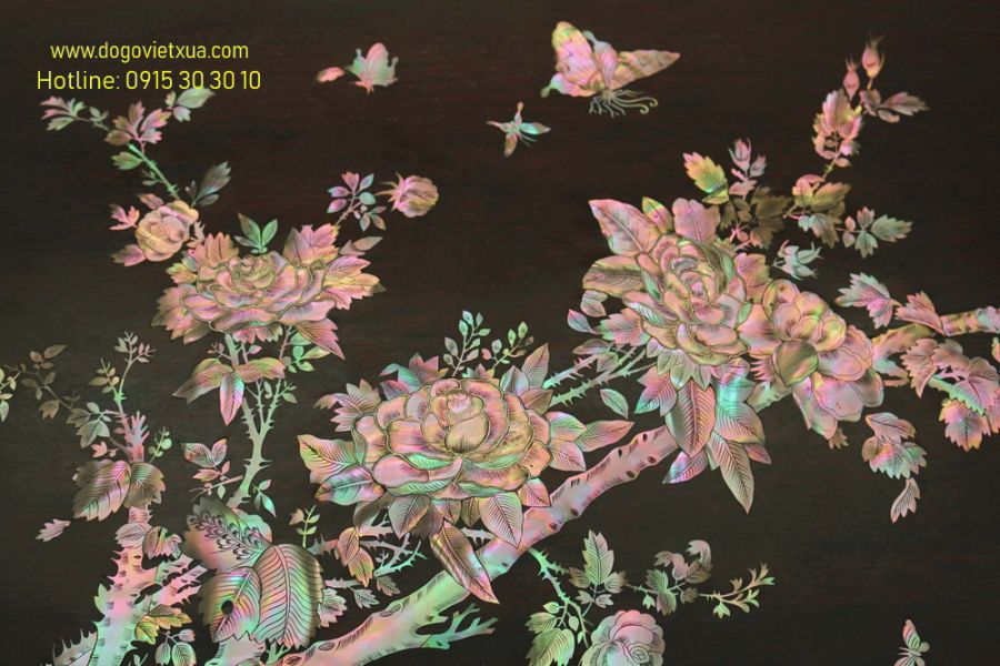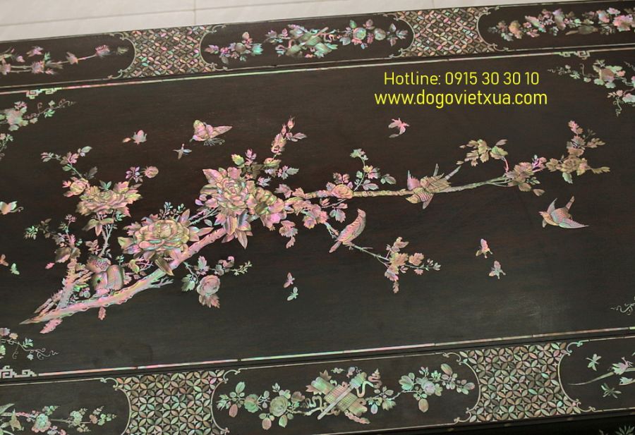 Tuyệt phẩm này được chạm khắc và cẩn ốc xà cừ rất tinh tế, sắc nét, tỉ mỉ và công phu bởi bàn tay nghệ nhân tài hoa bậc nhất, đường chạm rõ nét mềm mại, ốc xà cừ 7 màu sáng rực rỡ mỗi góc nhìn nổi mỗi màu khác nhau đẹp hiếm có.