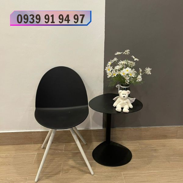 Bộ bàn Tulip tròn 2 ghế thân nhựa chân thép sơn tĩnh điện phong cách Châu Âu