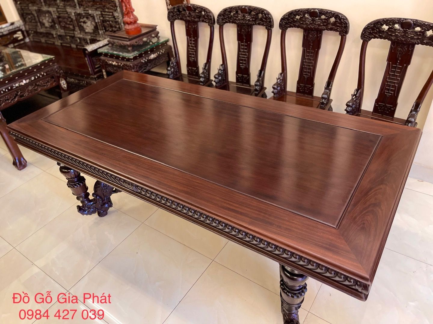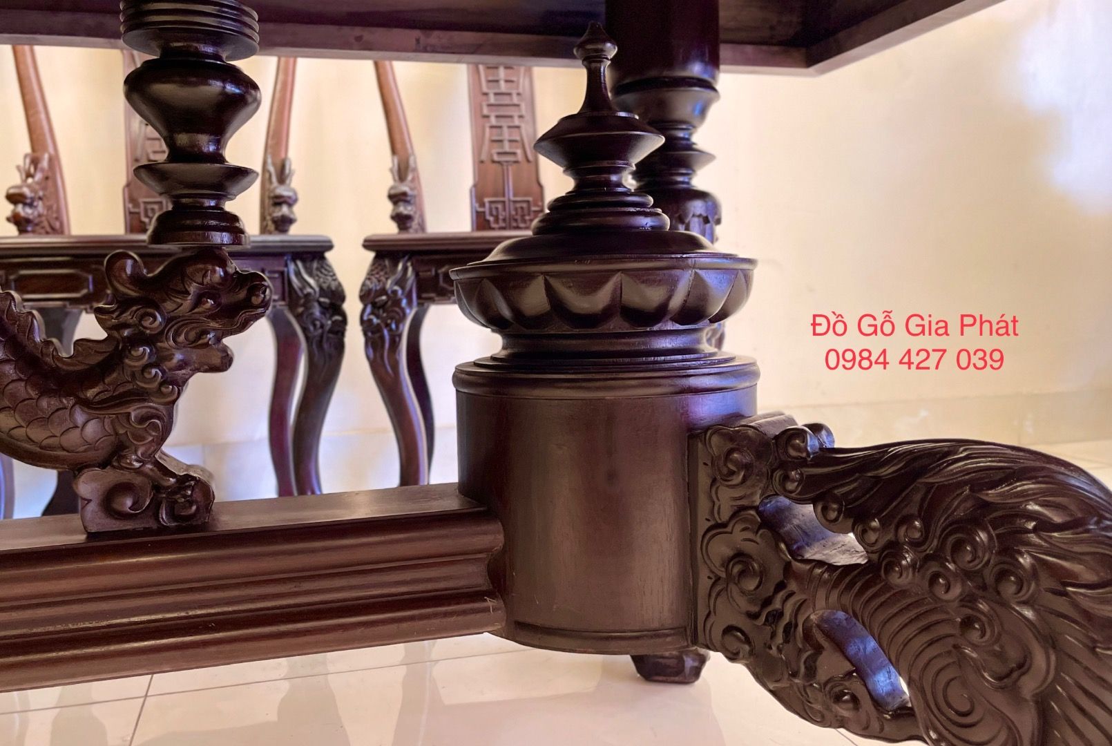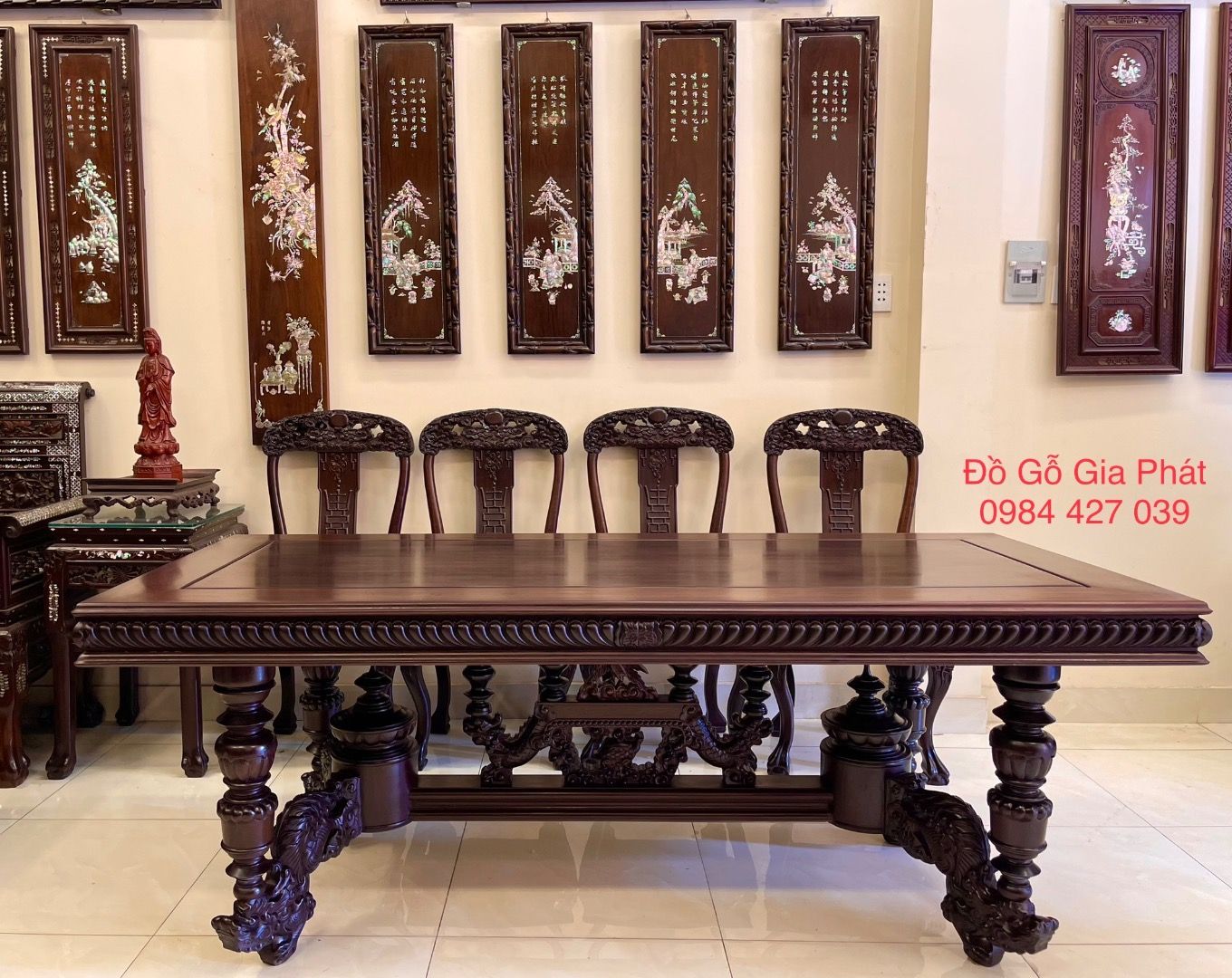+ Bộ bàn ăn kỳ lân 9 món: 8 ghế và 1 bàn dài chữ nhật mặt gỗ