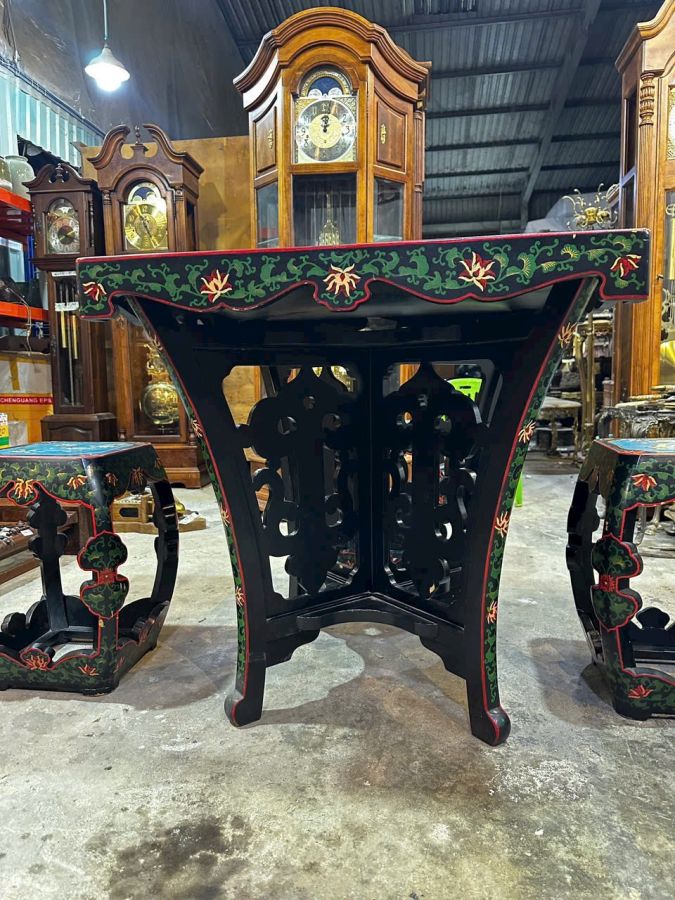 Bộ bàn trà Pháp lam Bàn:C80cm_N80c m_S80cm Ghế:C48cm_N40 cm_S40cm Giá.24,5tr + shíp lh.