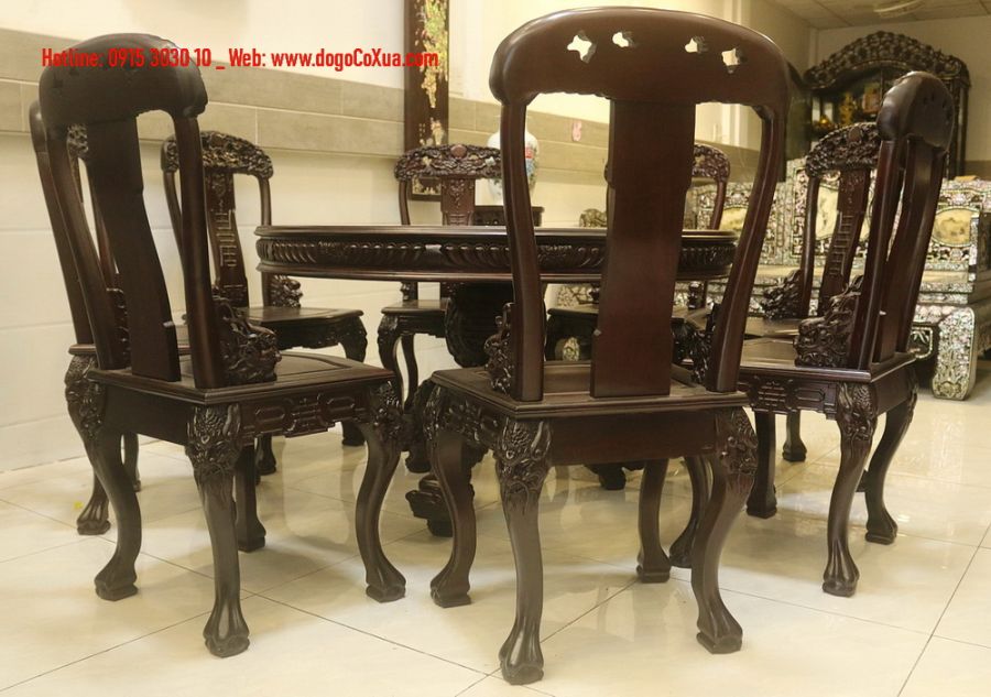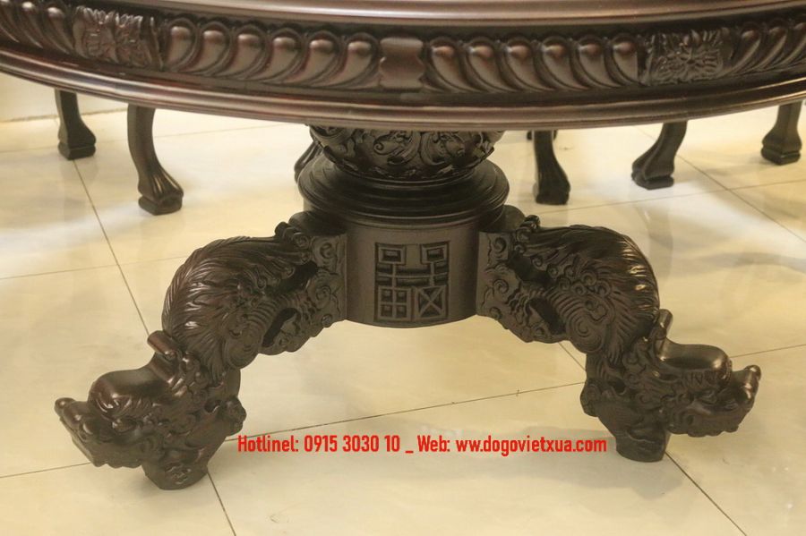 Đồ Gỗ Việt Xưa tự hào giới thiệu bộ bàn tròn chân kỳ lân kết hợp 8 ghế đục chạm rồng – Một tuyệt phẩm mang đậm dấu ấn nghệ thuật và giá trị phong thủy - Một sự kết hợp hoàn hảo giữa nghệ thuật chạm khắc gỗ và vẻ đẹp tự nhiên của viên đá cẩm thạch quý hiếm có 1-0-2. Đây không chỉ là món đồ nội thất mà còn là biểu tượng của sự quyền quý, sung túc và thịnh vượng.