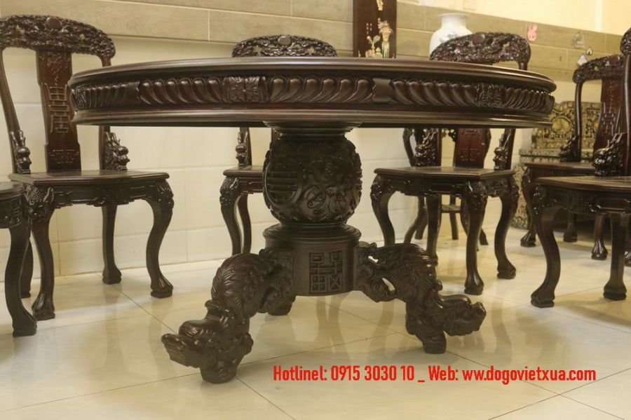 BỘ BÀN TRÒN CHẠM [ LONG - LÂN - PHÚC - THỌ ] ĐẸP KINH ĐIỂN