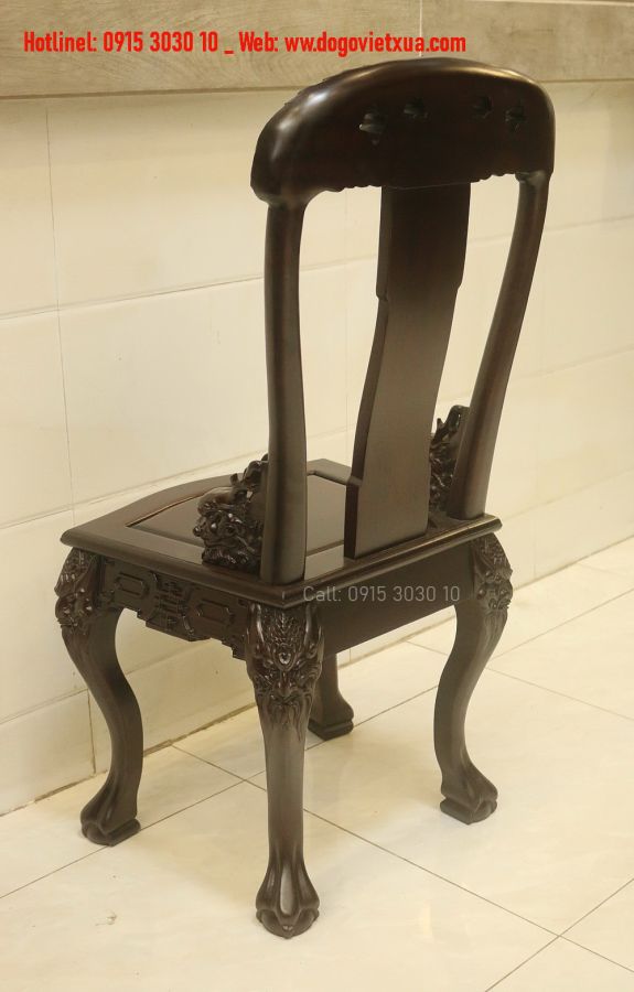 Chân ghế uốn cong mềm mại, kết thúc bằng dáng vuốt rồng mạnh mẽ, tạo nên sự vững chãi và sang trọng.