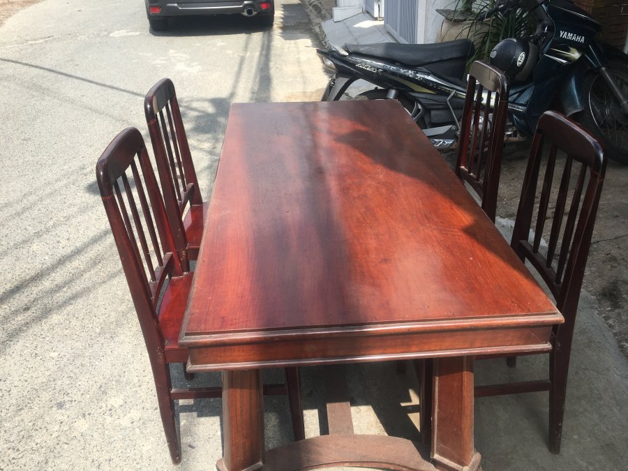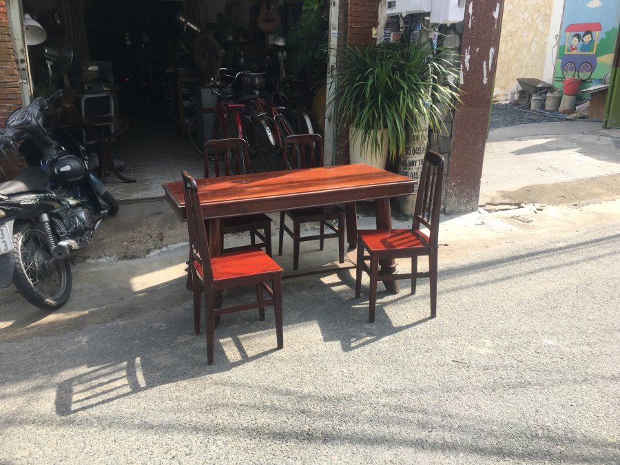 Gl bộ bàn xưa 4 ghế căm xe mặt gõ KT bàn 76 x 70 x 140 cm. Hàng đẹp và cứng cáp. G