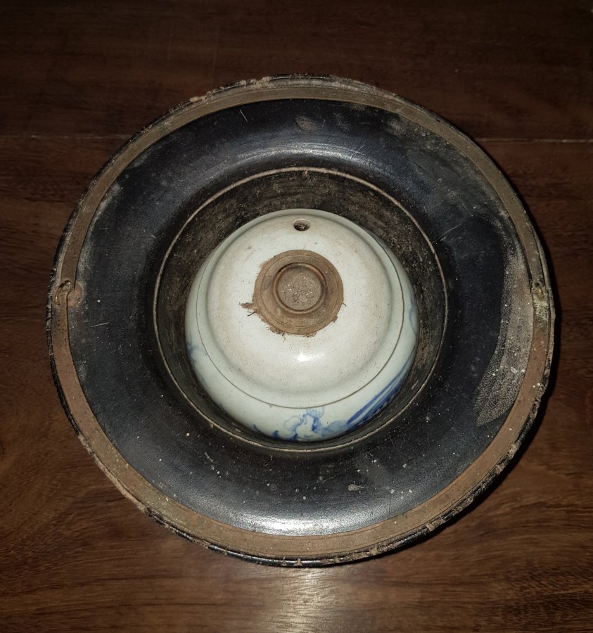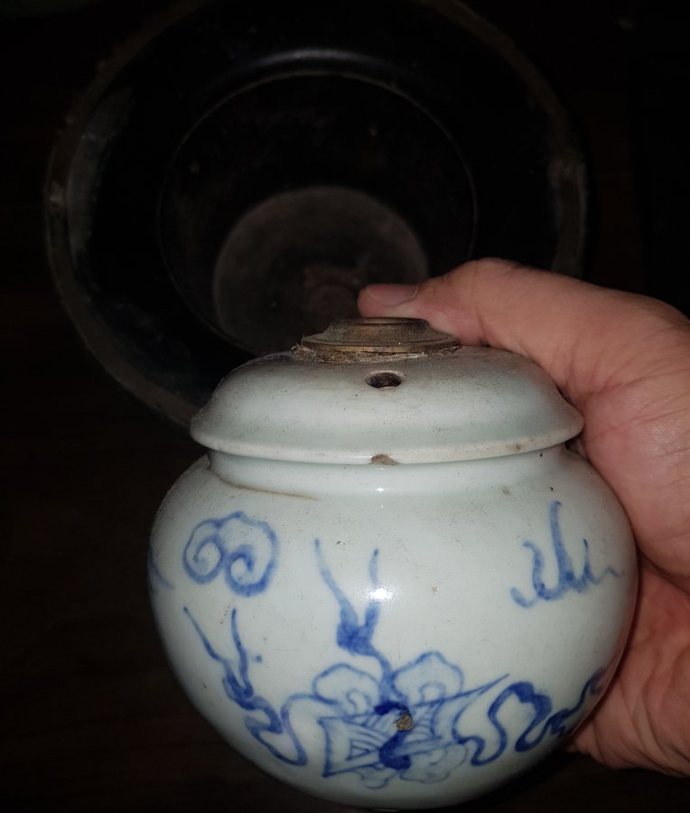 Bộ bát điếu chuẩn cổ vật. Bát là gỗ cổ nguyên khối, còn nguyên quai xách bằng đồng. Còn điếu là gốm sứ Vạn Ninh chuẩn cổ. Tình trạng điếu lành 99%. GL cả bộ 3500k