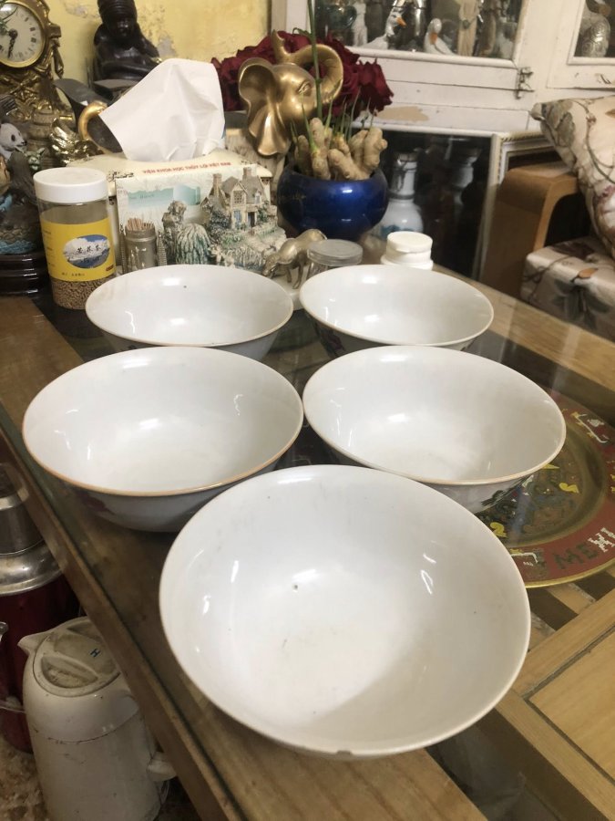 * Số lượng/Tình trạng: Bộ 5 chiếc. Có 1 chiếc bị sứt nhẹ.