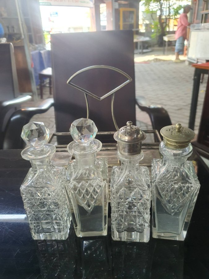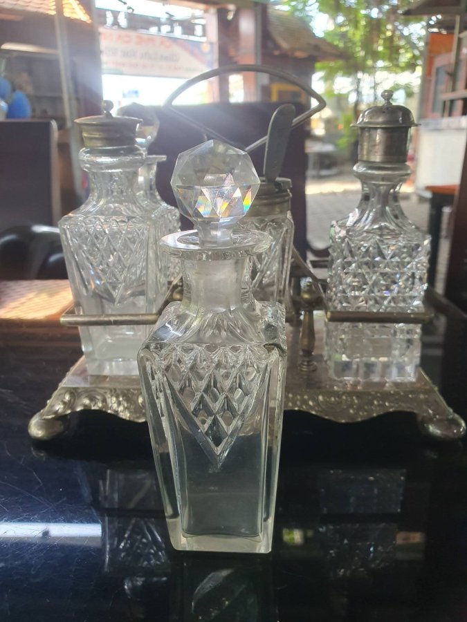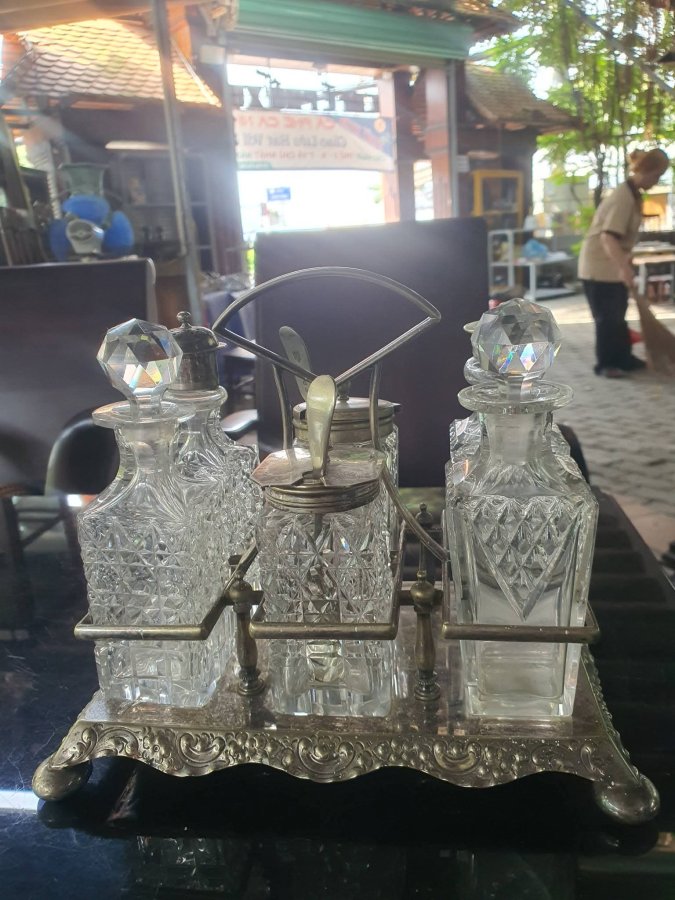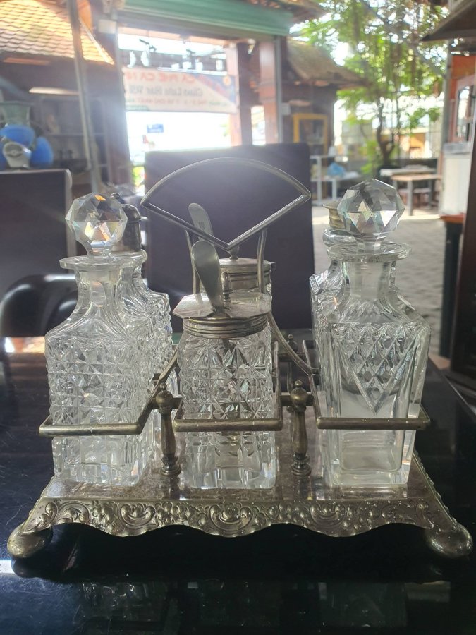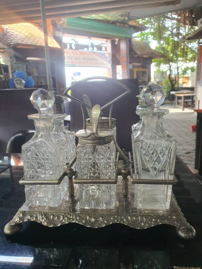 Bộ bình mạ bạc cổ. KT : tổng thể cả bộ cao 20cm, ngang 22cm.
