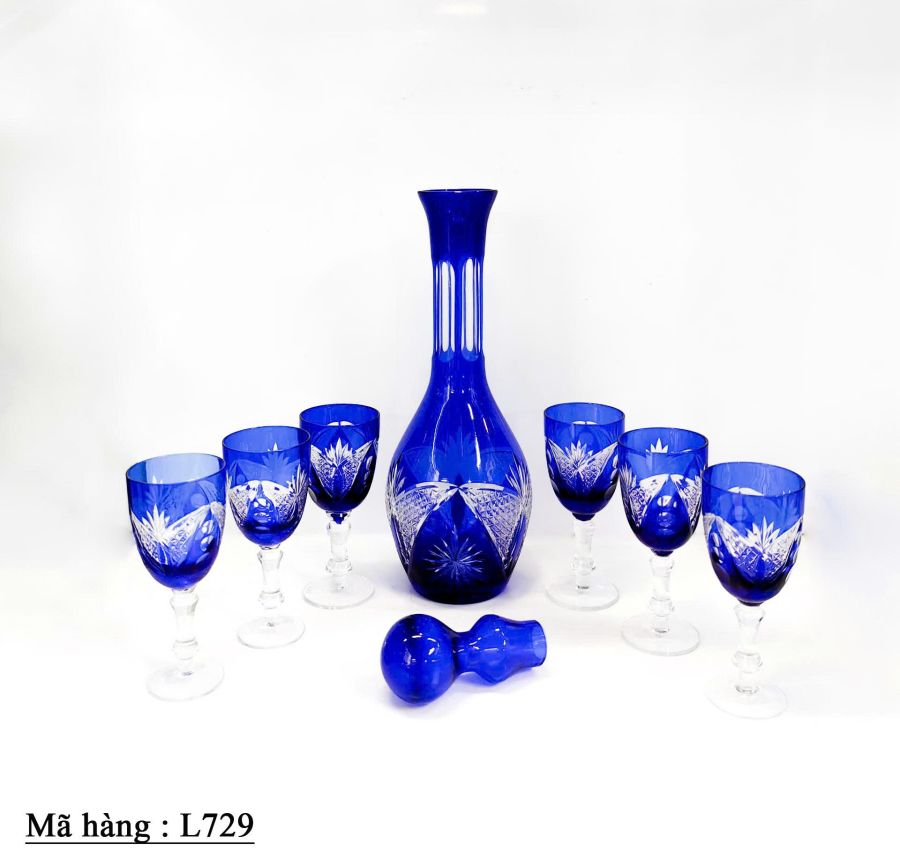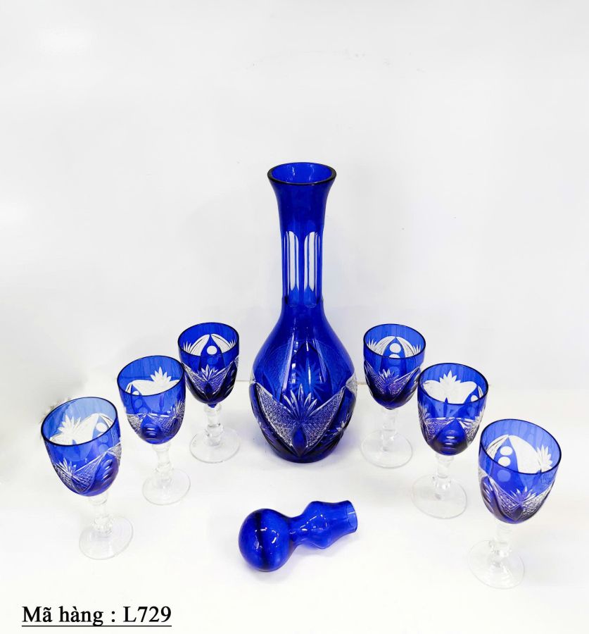 Bộ bình đựng ******* Bohemia xanh Cobalt .