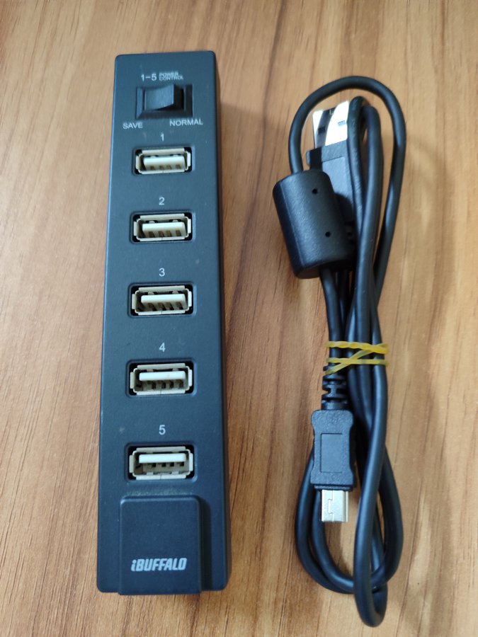 Bộ chia cổng USB 7 ngõ Buffalo, dùng nguồn DC 5V, hoạt động tốt.