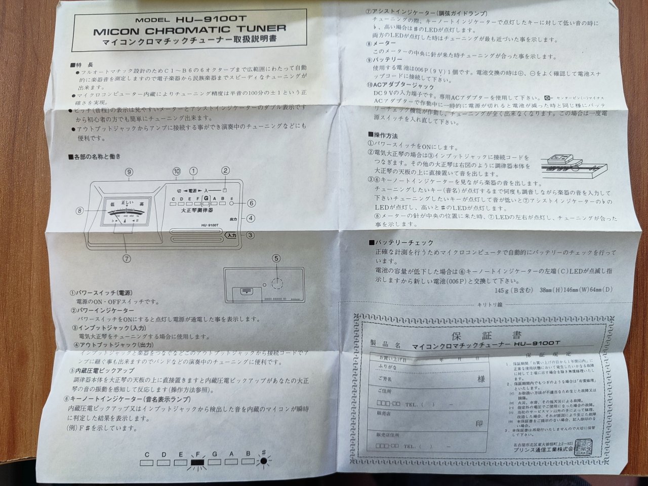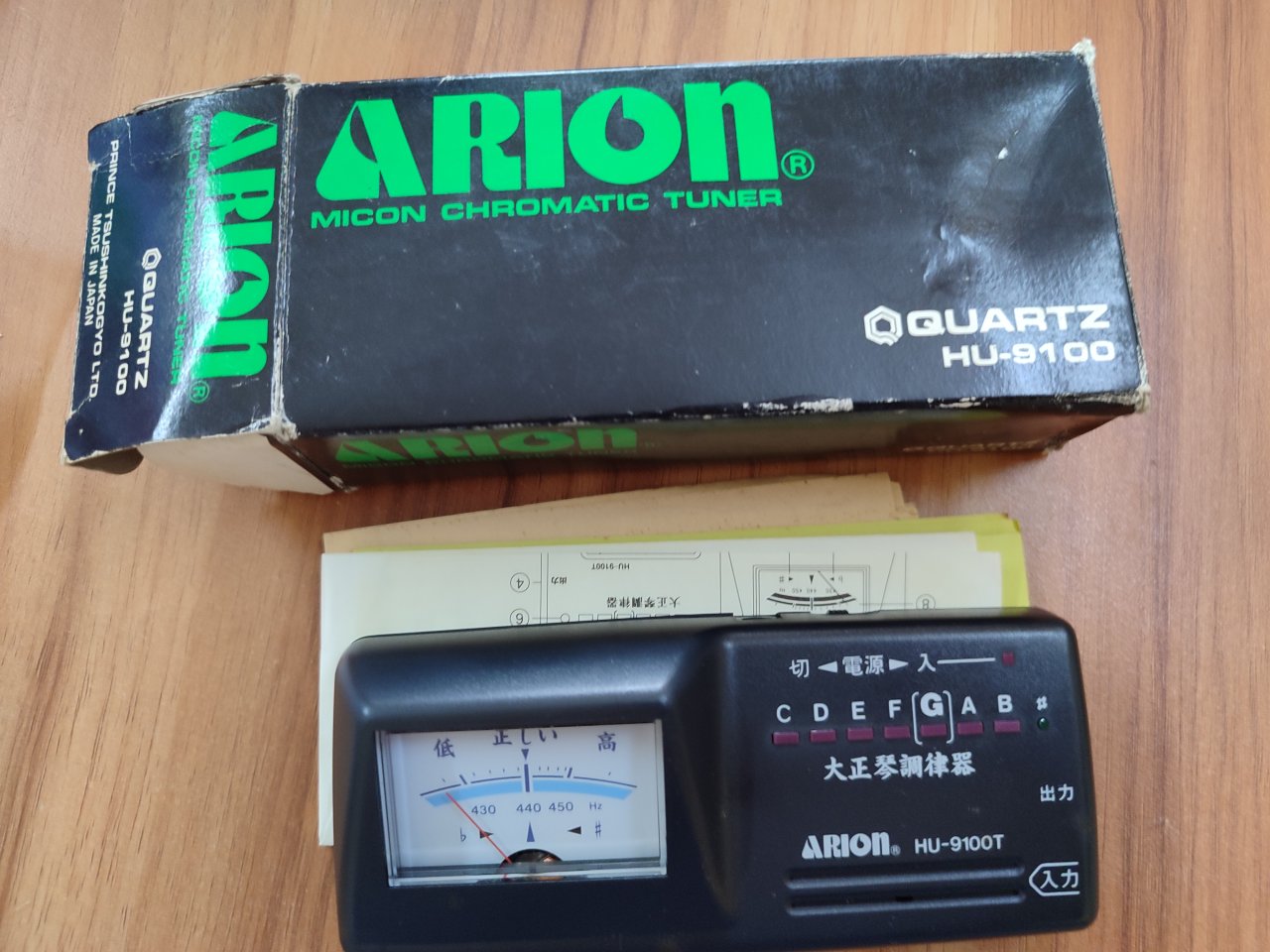 Bộ chỉnh dây nhạc cụ Arion HU-9100, hàng Nhật, còn nguyên hộp kèm giấy hướng dẫn sử dụng, dùng pin 9V. Test lên nguồn, cách sử dụng ae mua về nghiên cứu dùm.