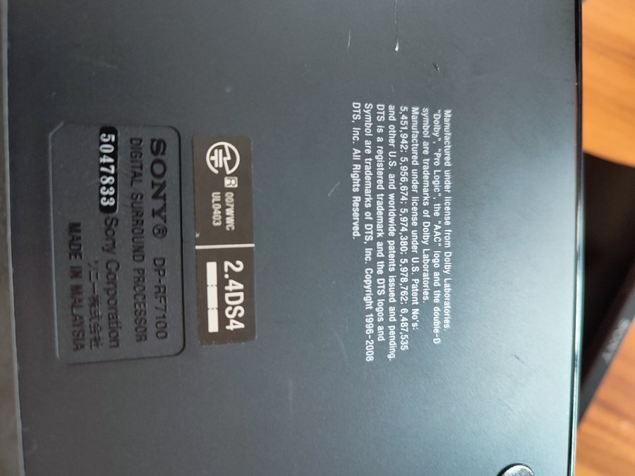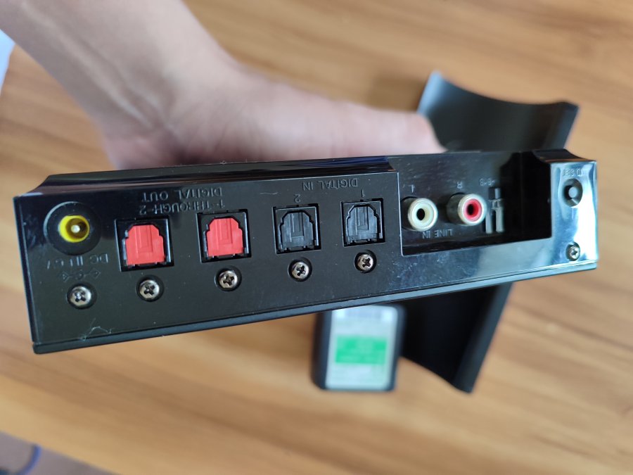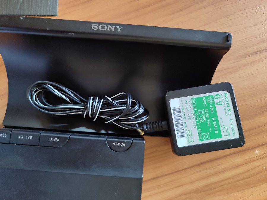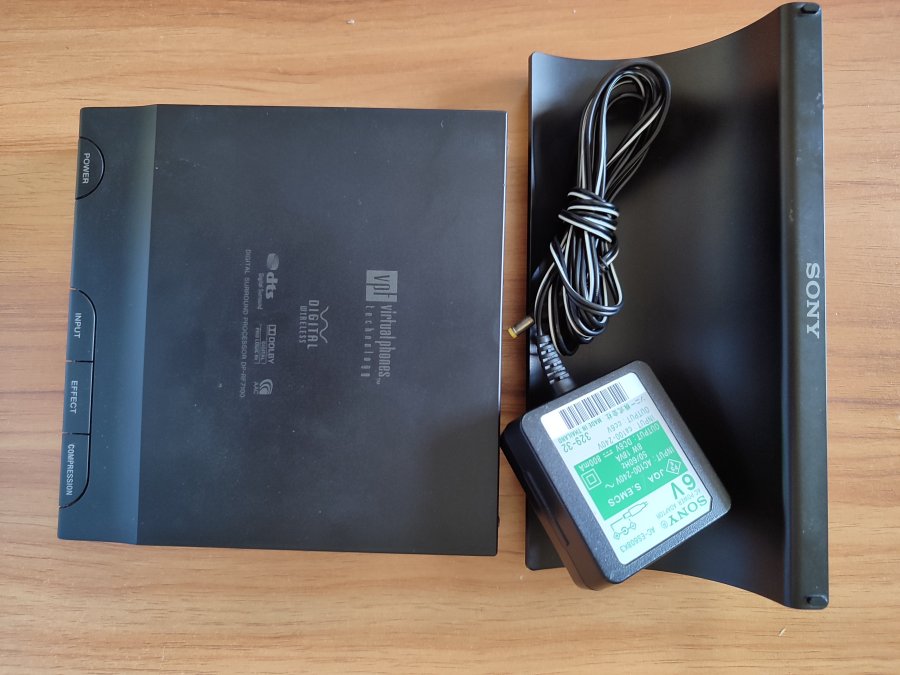 Bộ chuyển đổi âm thanh Sony MDR-RF7100, dùng adapter 6V, điện vào 100-240V. 1 ngõ AV vào, 2 ngõ vào và 2 ngõ ra cổng quang optical. Test lên nguồn, chức năng và cách sử dụng a mua về nghiên cứu dùm.