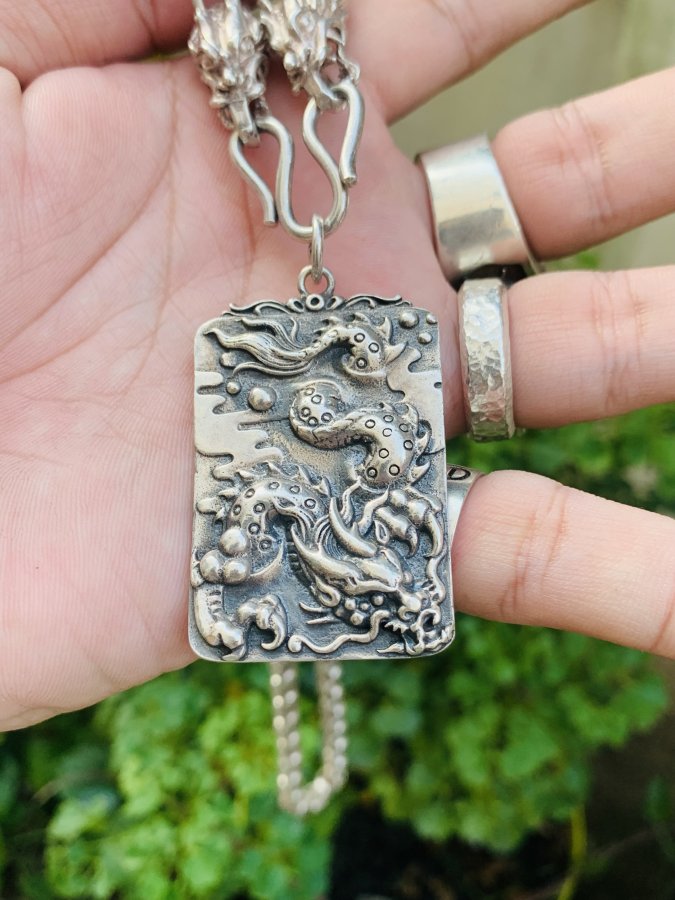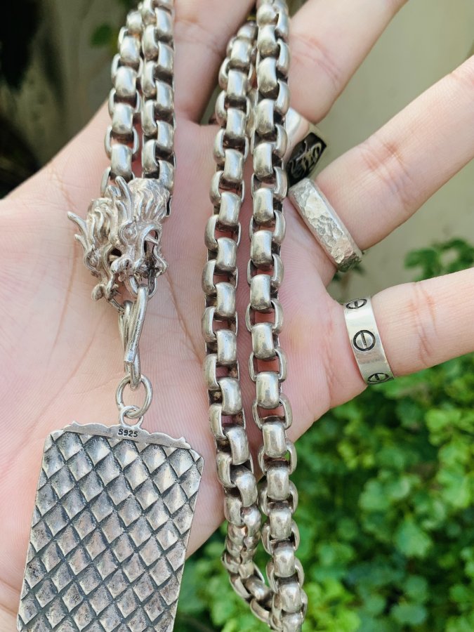 Bản dây to 9-10ly. Dài 61cm. Mặt dây to 3,1 x 4,6cm( luôn móc là 5,6cm). Nguyên bộ nặng hơn 45 chỉ.