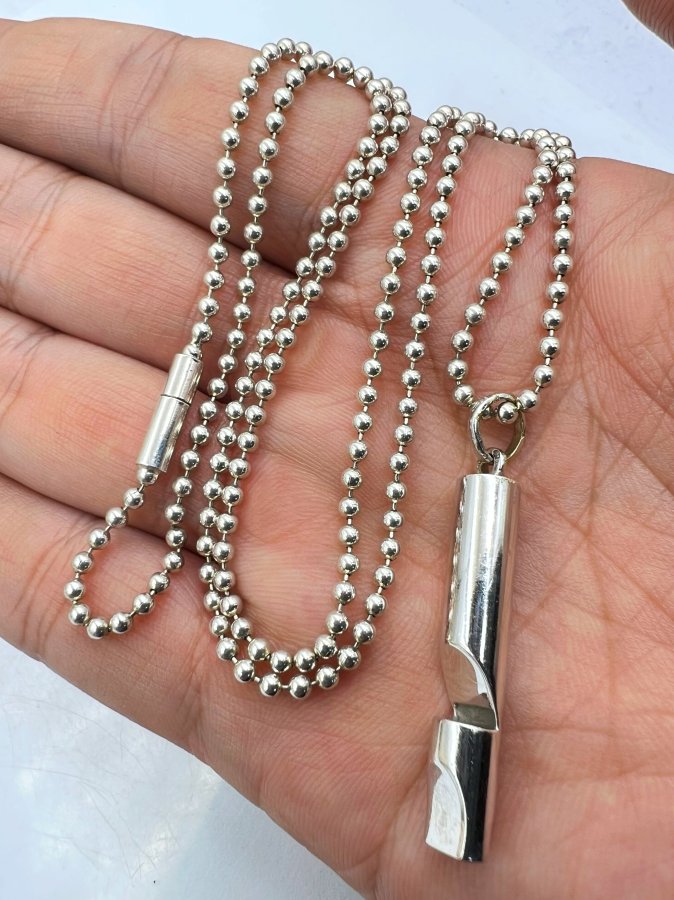 Bộ dây bi bạc 925 hiệu gucci và mặt còi vàng 10k italy hiếm gặp rất đẹp, mặt còi thổi được, dây dài 60cm tròng đầu, mặt size 8x33mm, nặng 17.3gram (4.61 chỉ), mặt còi vàng 10k cân riêng 5gram (1.33 chỉ), giao thông 1x bé iu❤️ Thiên 0923.12.6789