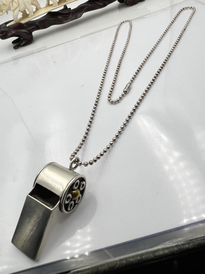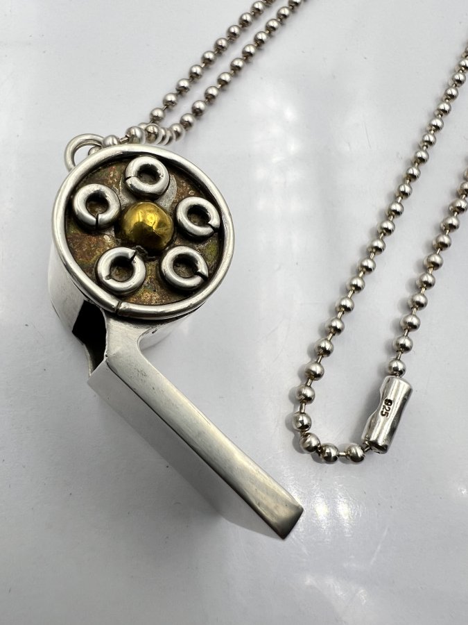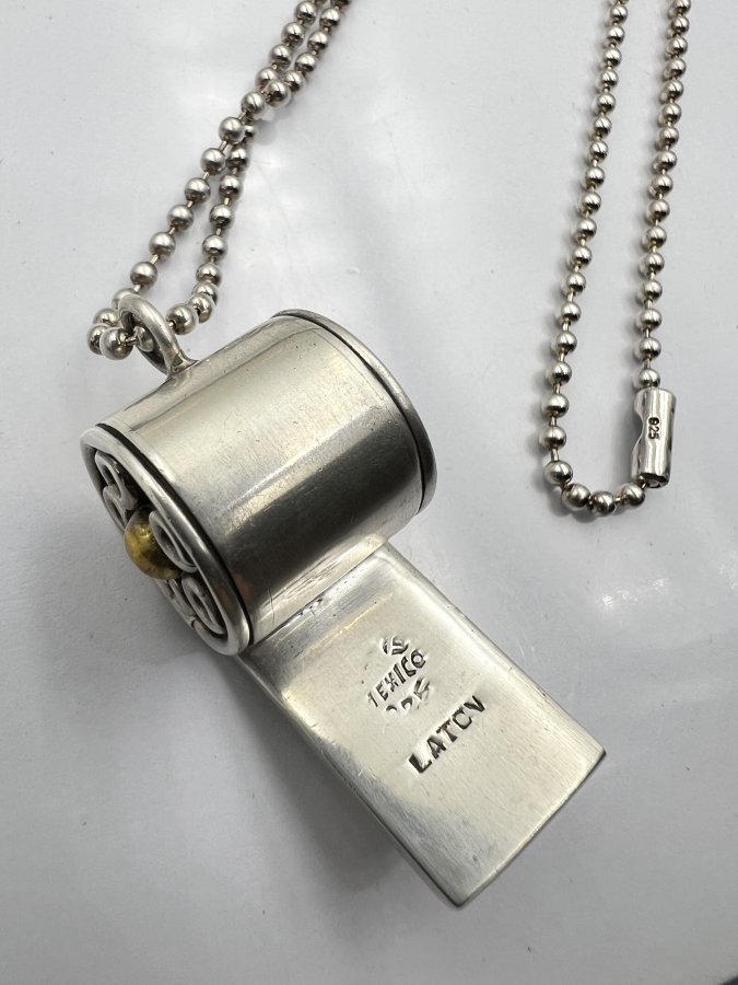 Bộ dây bi và mặt còi bạc 925 mexico hiệu Latcy hoa văn sắc nét rất đẹp, tiếng thổi to và thanh, dây dài 72cm tròng đầu, mặt size 21x46mm, nặng 29gram (7.73 chỉ), giao thông 5tr6❤️ Thiên 0923.12.6789