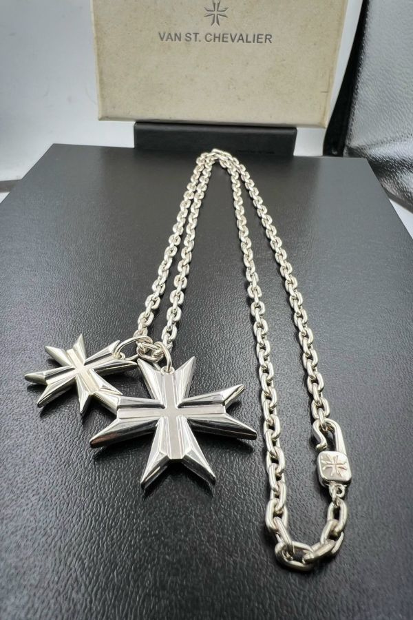 Bộ dây chuyền và 2 mặt bạc 925 hiệu Van ST.Chevalier hoa văn sắc nét rất đẹp, còn hộp, phôm bự, dây dài 68cm tròng đầu - bản ngang 4mm, mặt size 25x30mm và 35x40mm, nặng 55.3garm (14.75 chỉ)
