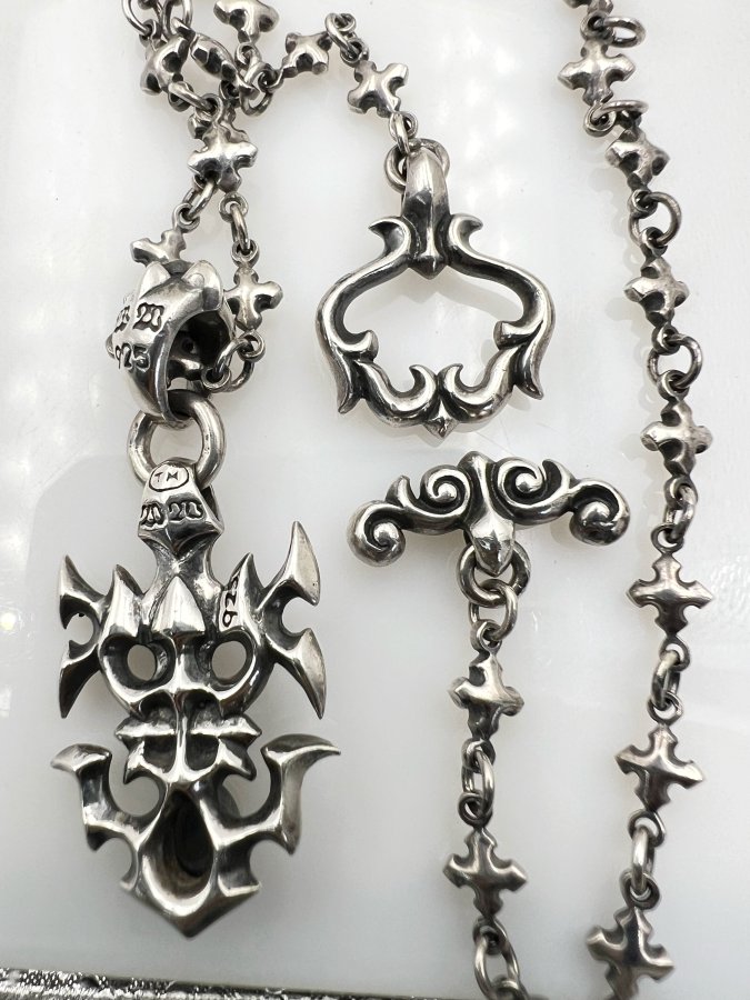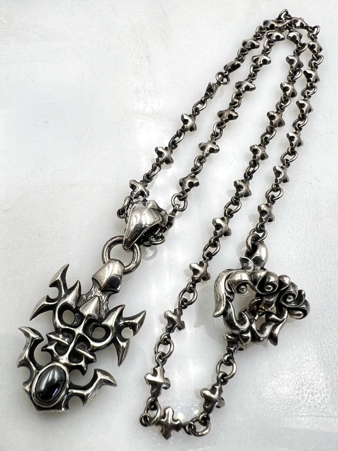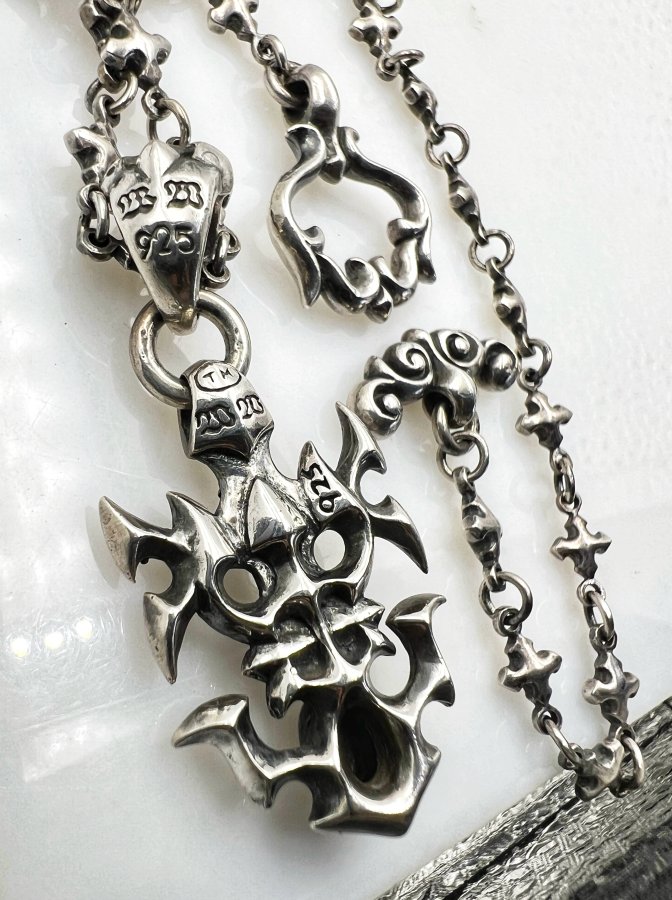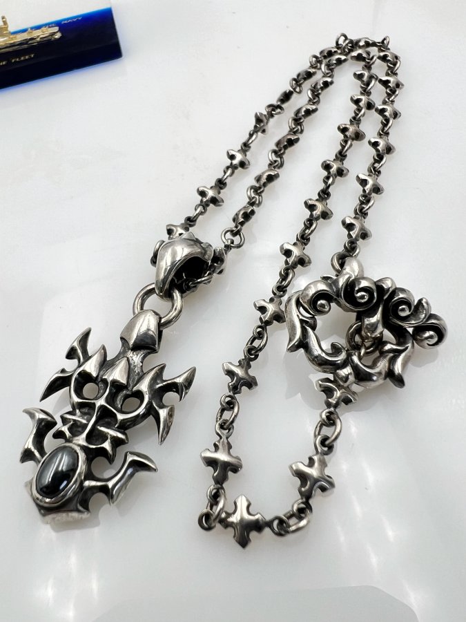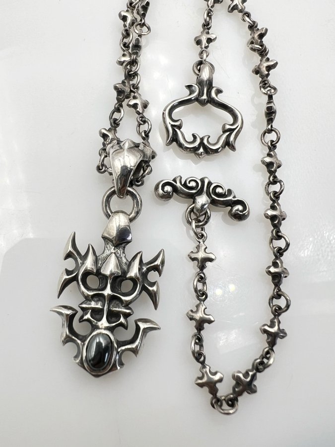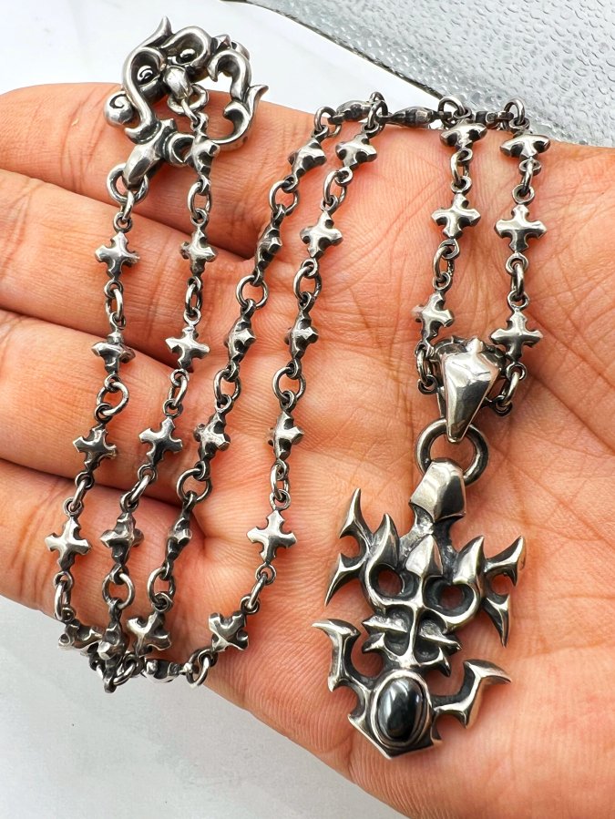 Bộ dây chuyền và mặt bạc 925 hiệu William Walles mới tinh hoa văn sắc nét đính đá Hematite rất đẹp, dây dài 50cm - ngang 6mm, mặt size 23x50mm, nặng 41.63gram (11.1 chỉ), giao thông 6tr5❤️ Thiên 0923.12.6789