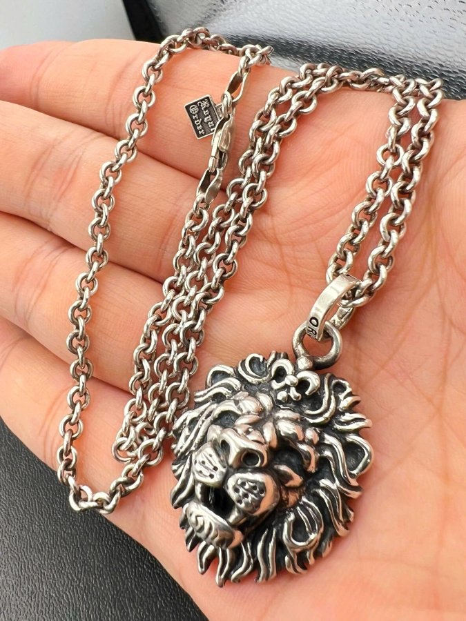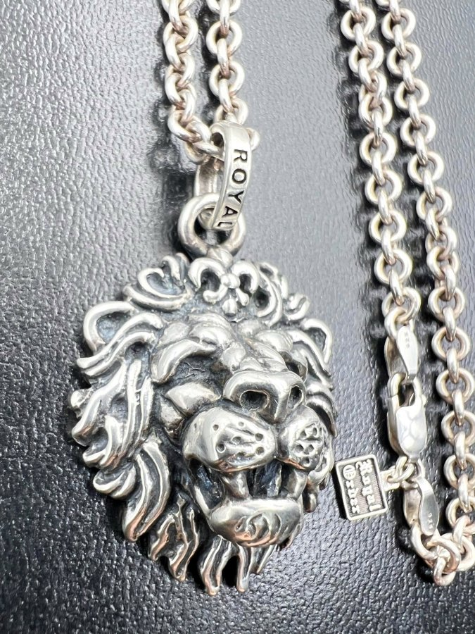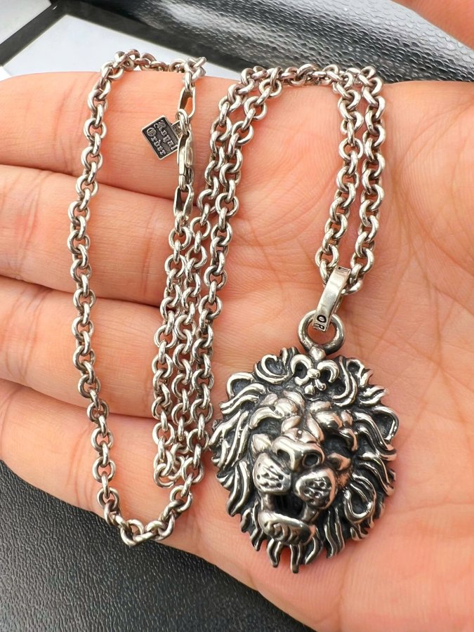 Bộ dây chuyền và mặt sư tử bạc 925 hiệu Royal Order