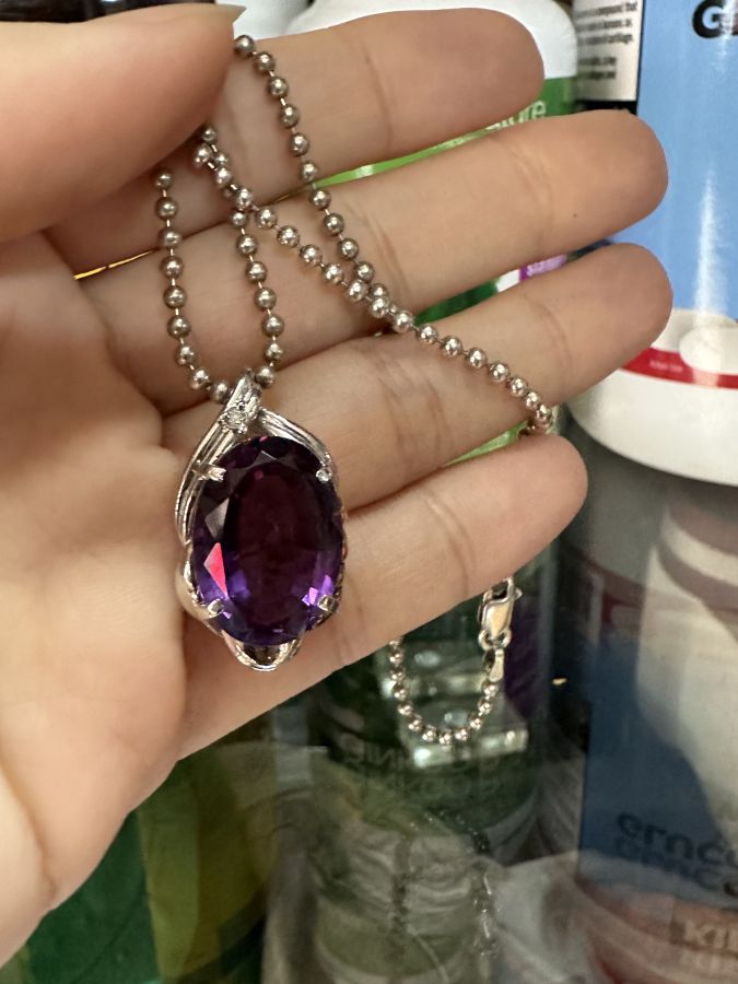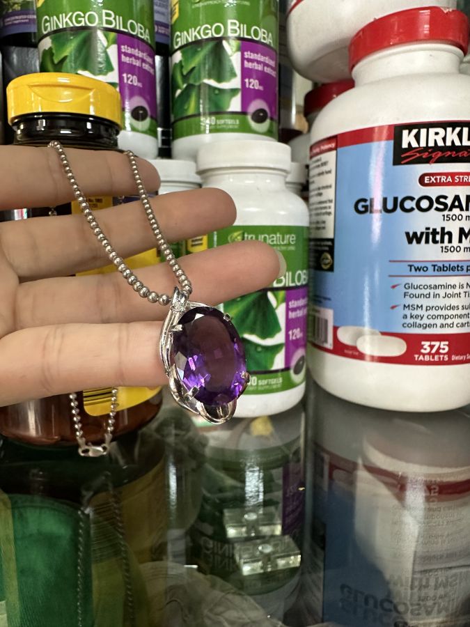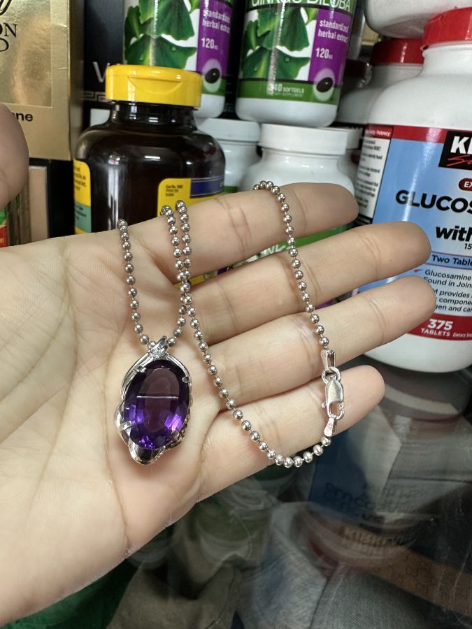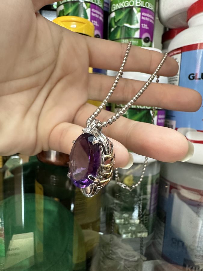 Cả bộ dây và mặt gắn đá thạch anh tím Dây bạcMặt dây bạc và vàng 10k Đeo sang và hợp phong thuỷ Mặt dây 2.7cm x 1.6cm