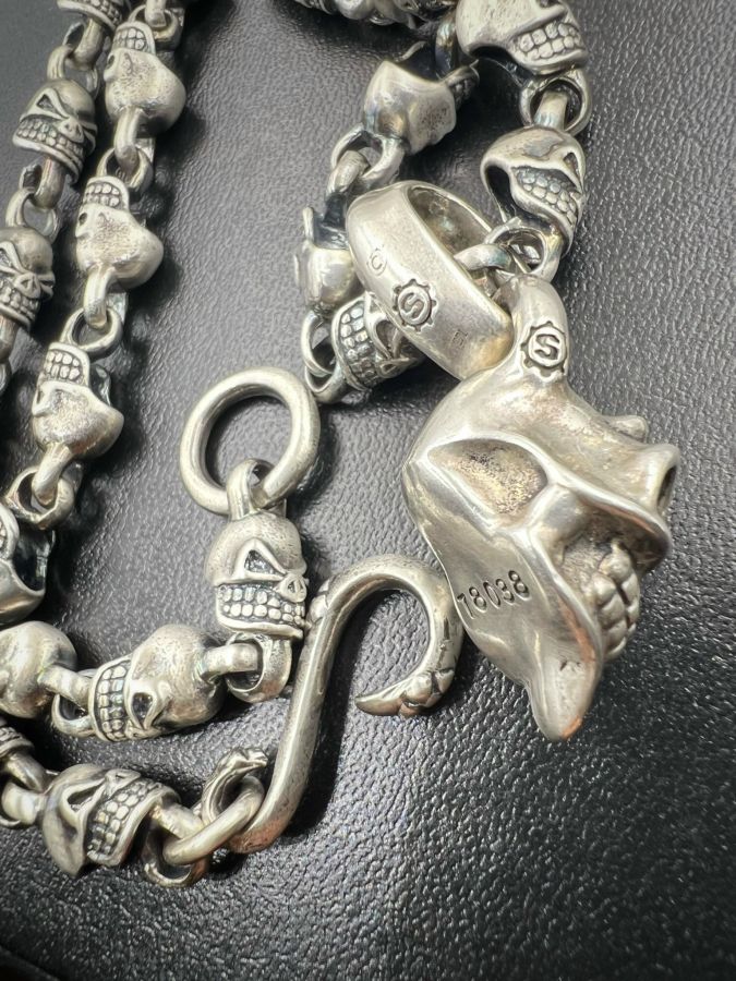 Bộ dây và mặt đầu lâu bạc 925 Nhật hiệu Starlin Gear hoa văn sắc nét rất đẹp, phôm bự hầm hố, dây dài 65cm tròng đầu - ngang 10mm, mặt size 18x46mm, nặng 132.4gram (35.3 chỉ)