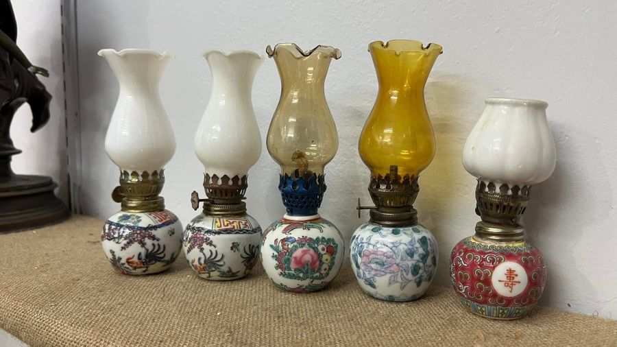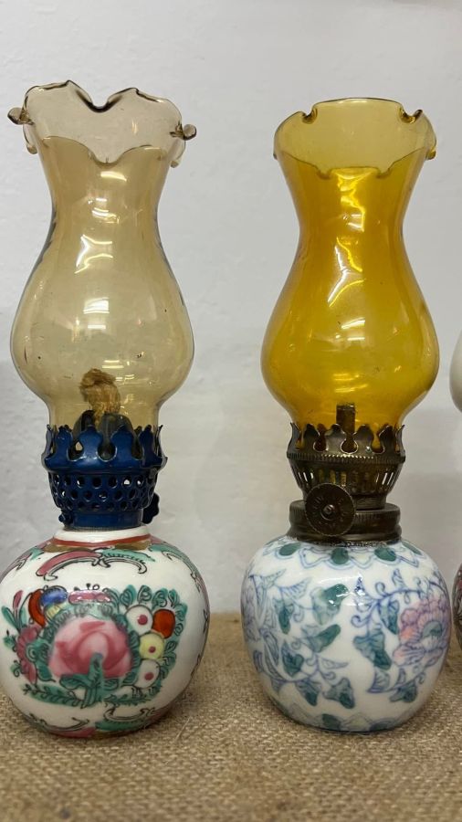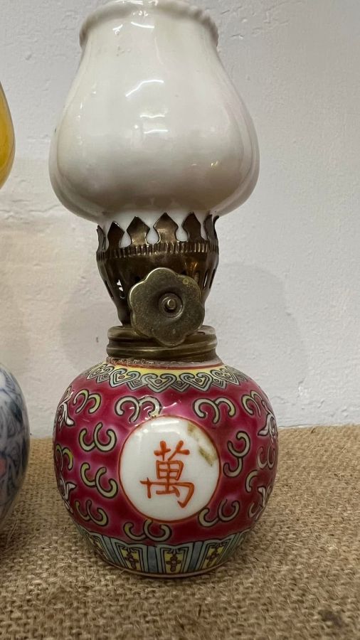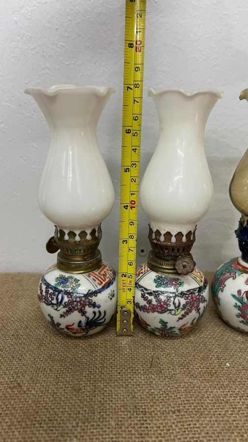 Bộ sét đèn dầu gốm sứ TQ chuẩn cổ vẽ men hàng nhập Pháp có mộc triện rất sắc sảo tuyệt đẹp